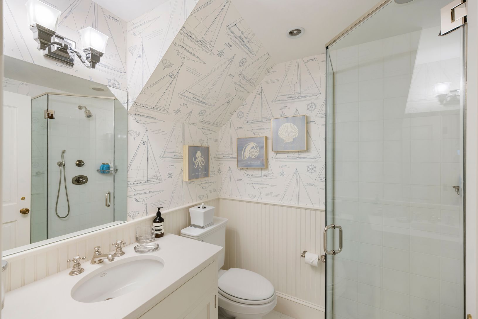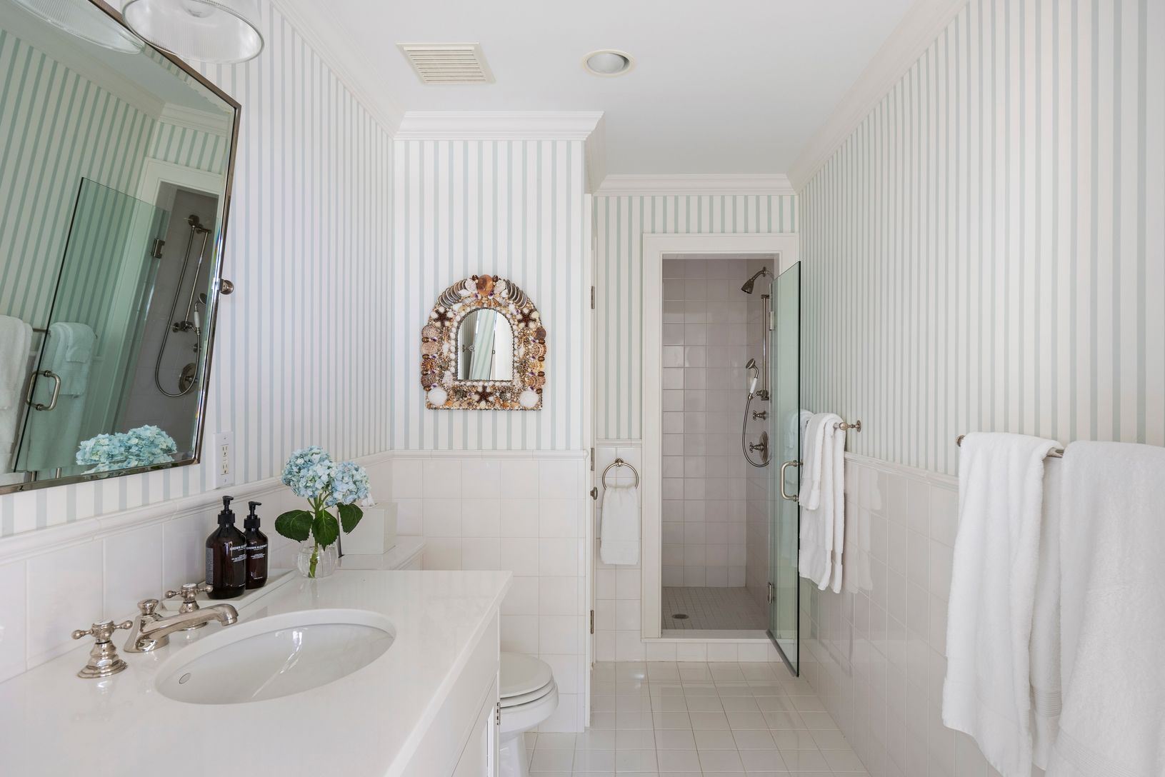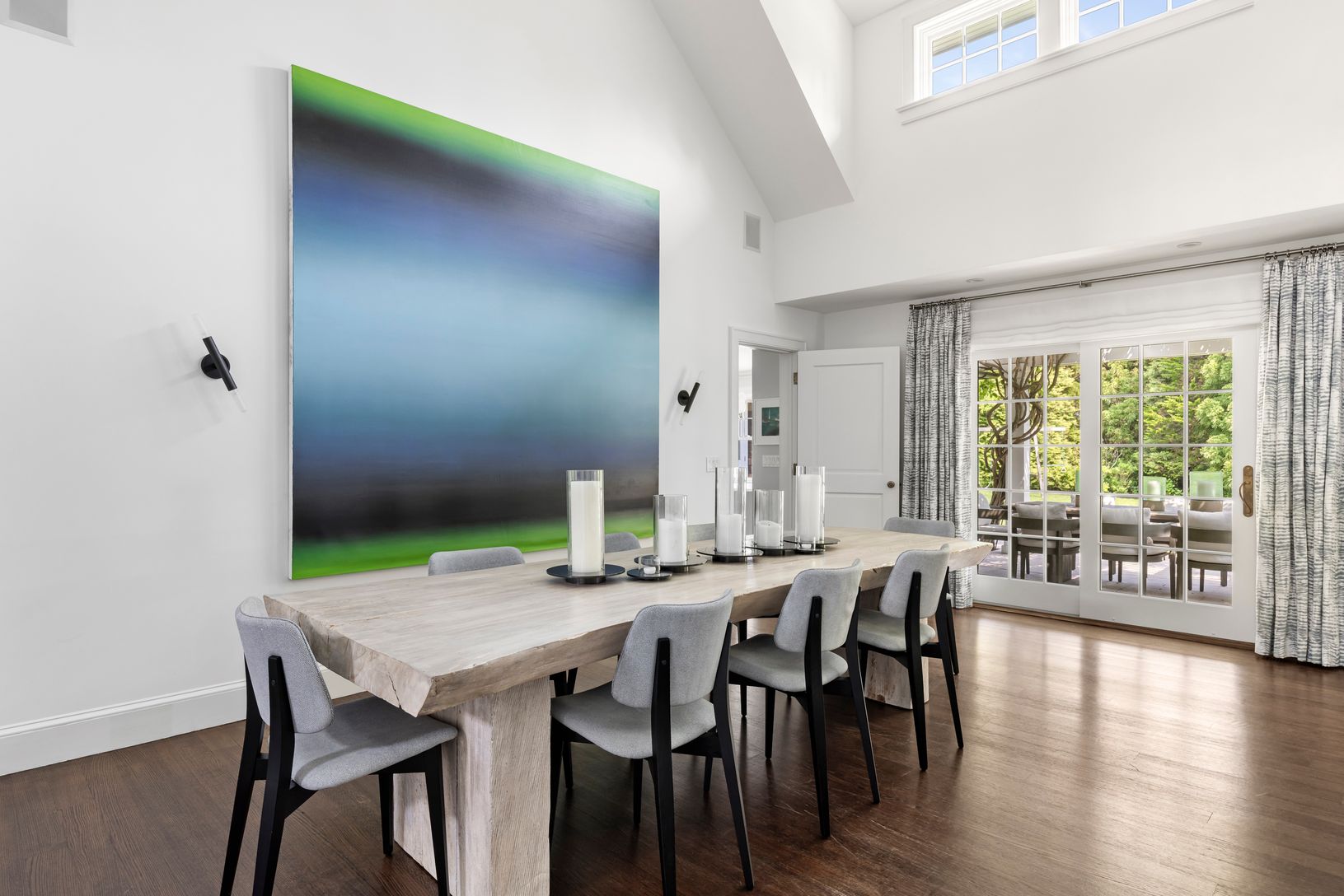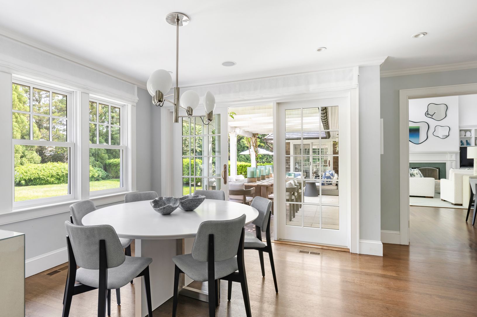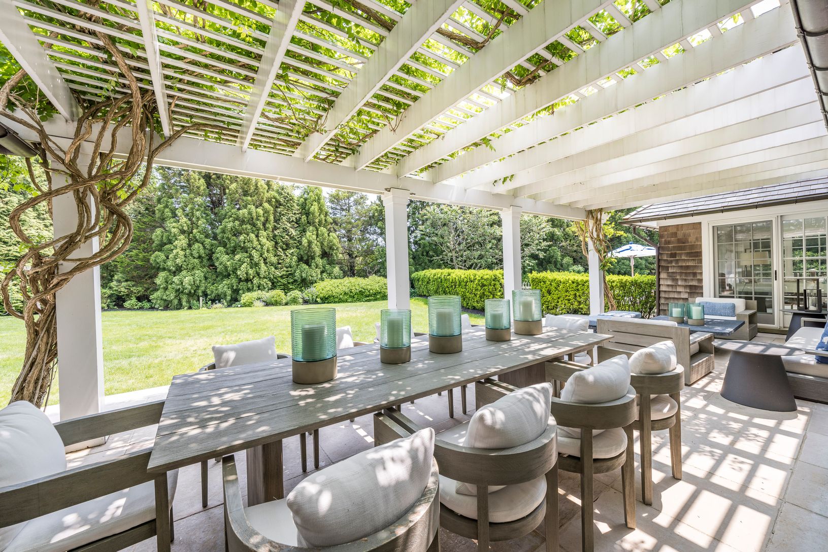 Exquisite Amagansett Traditional, just a stone's throw from Atlantic Beach. Driving up this private flag lot, you are greeted by lush mature landscaping and a quintessential Hamptons cedar shake home. Entering the house through an open foyer, you are immediately struck by the scale and size of the double height great room. With a wall of sliding doors onto the back patio, seamless indoor/outdoor entertaining is a breeze. For those colder fall