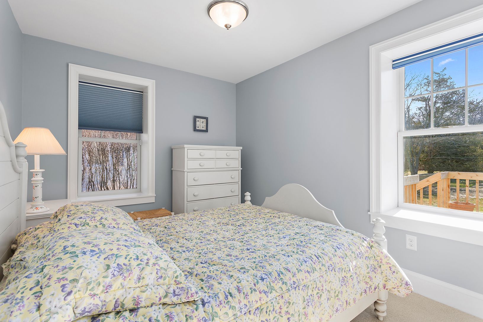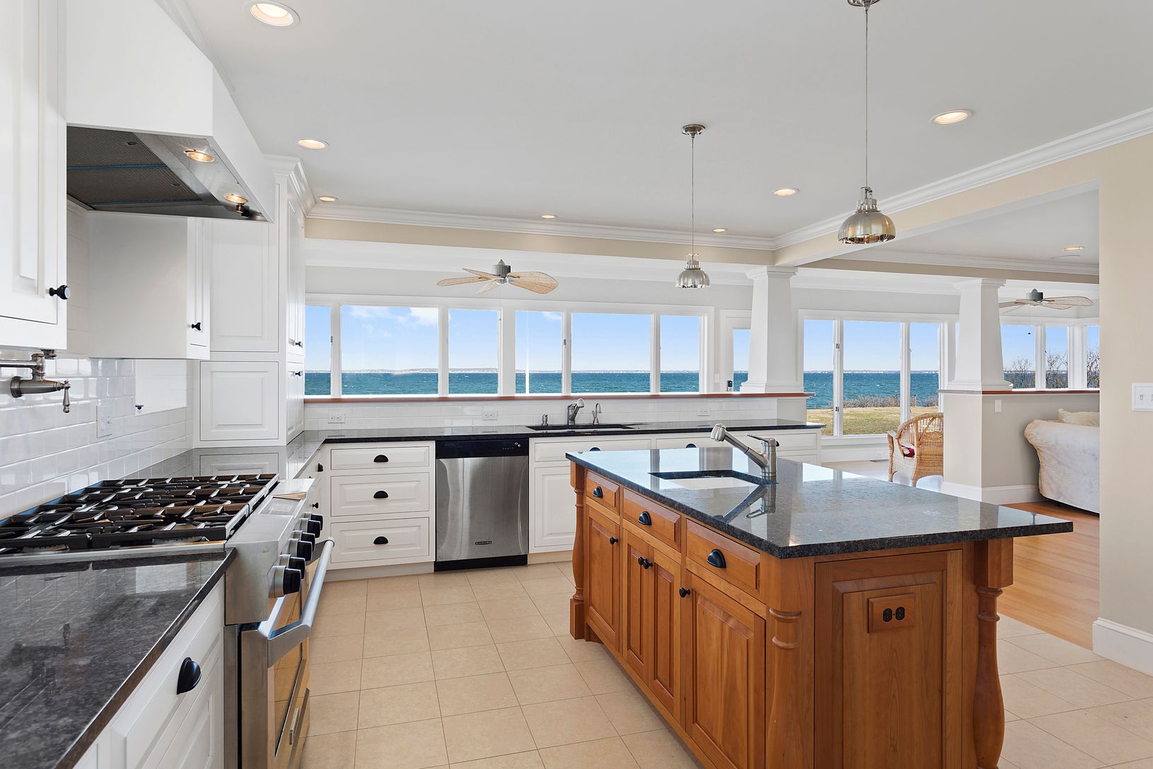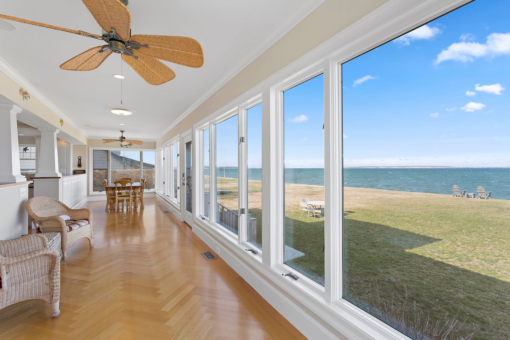 Situated on a shy acre+/- with 80 feet of bulkheaded Peconic Bay waterfront, this newly renovated wonderful Traditional Hampton retreat boasts four bedrooms, three full baths, a gourmet kitchen, office/extra room, living room with fireplace, and enclosed sun porch with dining area. Facing west for spectacular sunsets, this bayfront gem has water views from almost every room. 20 x 40' pool permit granted and in place on the Peconic Bay side of
