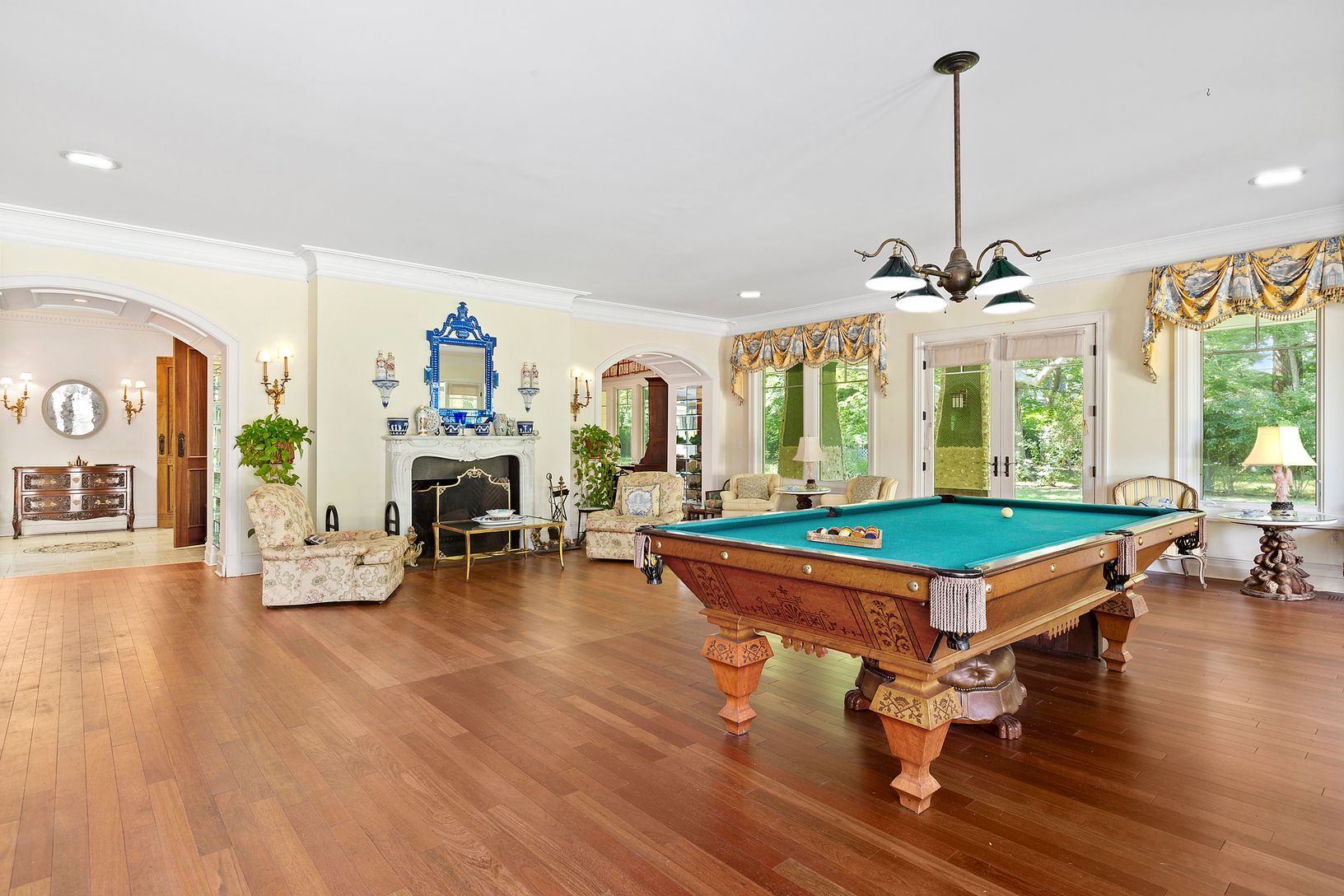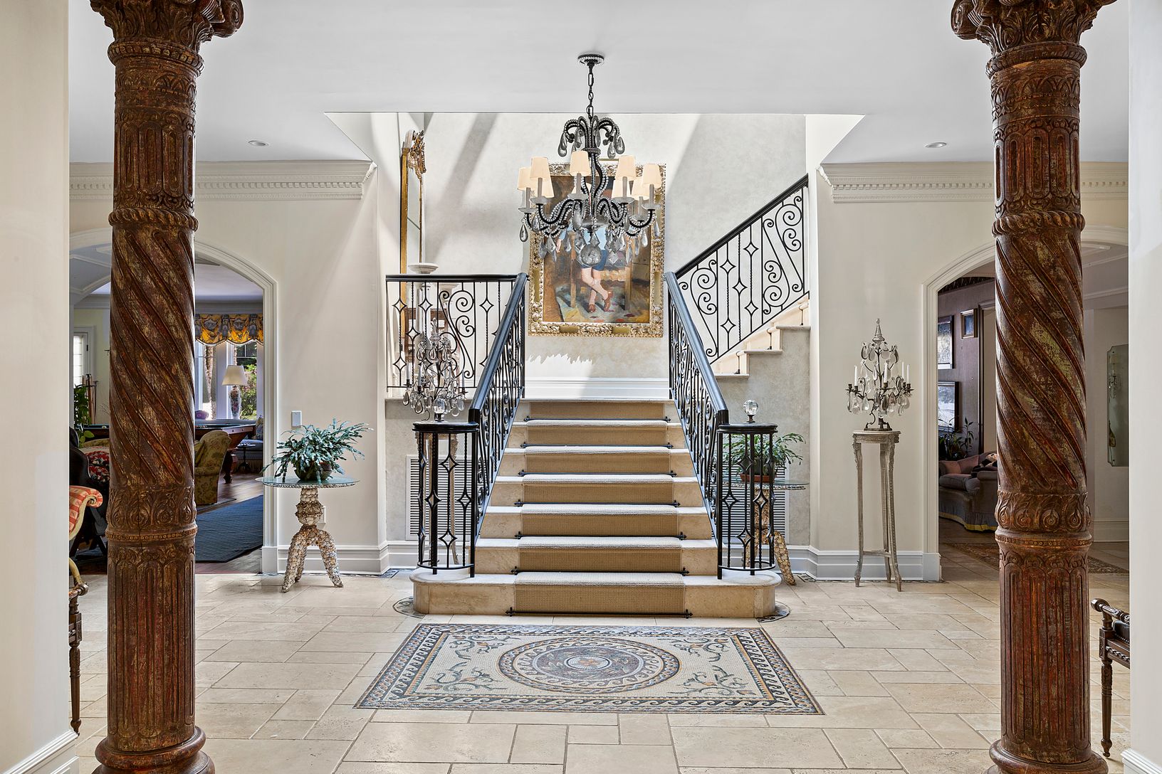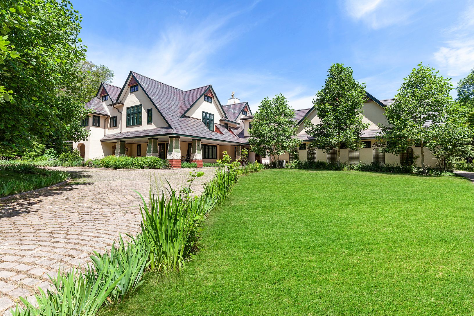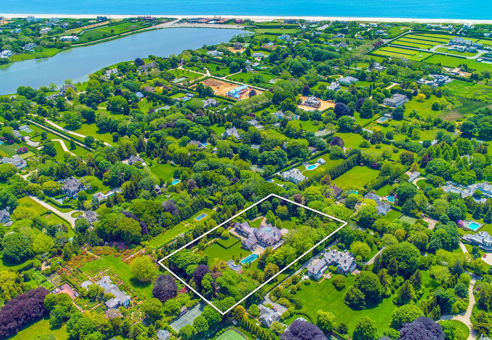 Rare opportunity in the desired Estate Section of Southampton Village with mature Olmstead landscaping, room for tennis, on 3.4 acres. This home features spectacular original designed mosaic tiling and a lavish skylight above the grand staircase. This home does not miss one ounce of detail from the formal dining room, a custom-built bar, oversized living room, two wood-burning fireplaces, wrap-around Ipe wood decking, newly installed Gunite po