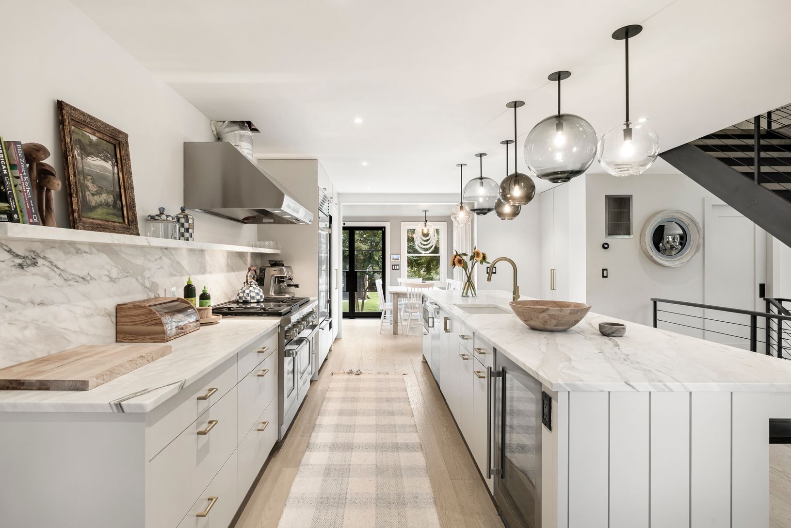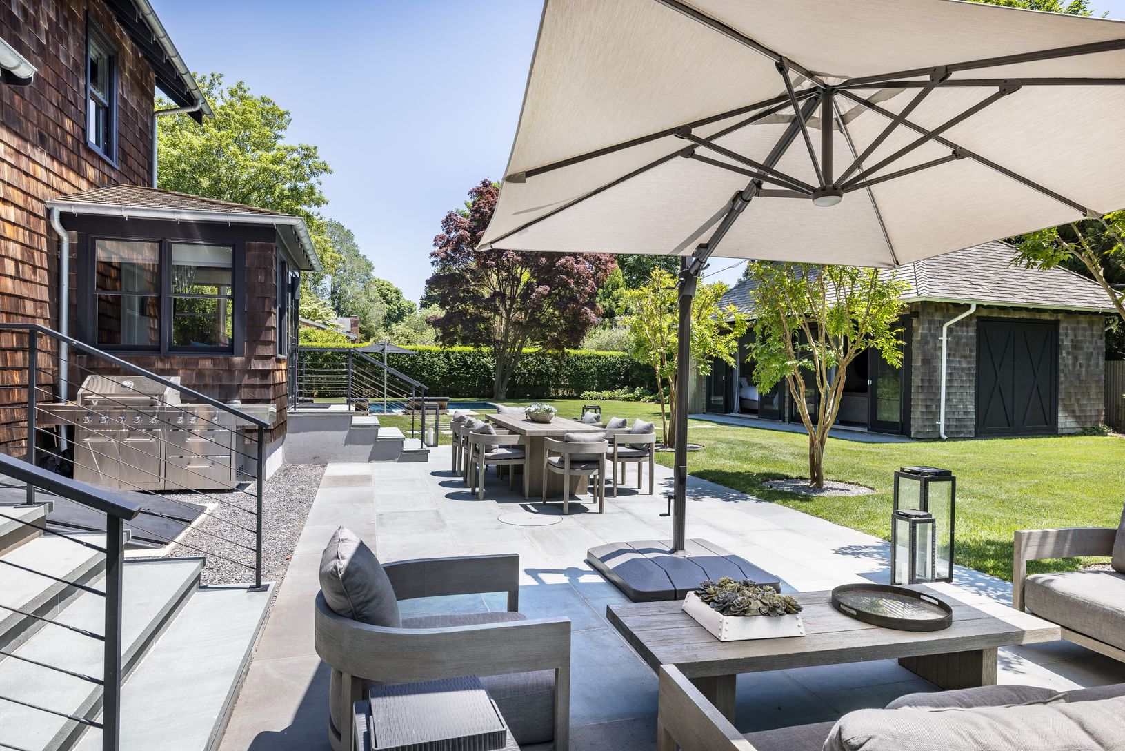 A stunning, turn-key renovation blending clean modern design with timeless Hamptons style, this unique three-story, four-bedroom, four-and-one-half-bath Village home is a brand-new offering in the heart of highly coveted East Hampton Village. Set on a rare double lot, the property features a heated 20' x 40' gunite pool with beautifully designed outdoor lounge and dining areas enhanced by ambient evening lighting, all nestled beneath a canopy