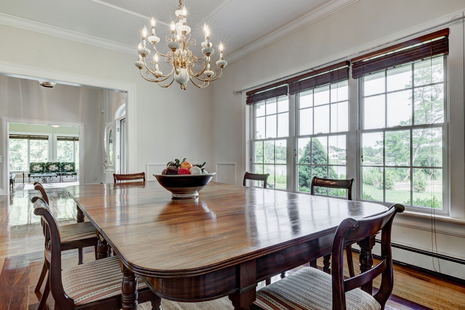Tasteful blend of old and new, this premium quality New England style home overlooks coveted Goose Creek in Southold. Gourmet eat-in kitchen with professional Viking cooktop and wine fridge opens onto great room with fireplace. Enter home via gracious atrium foyer between water-view sun room and formal dining room. 1st floor master with ensuite, 3 bedrooms upstairs plus office/exercise/game room, balcony, pergola, gardens, 3-car garage, associ