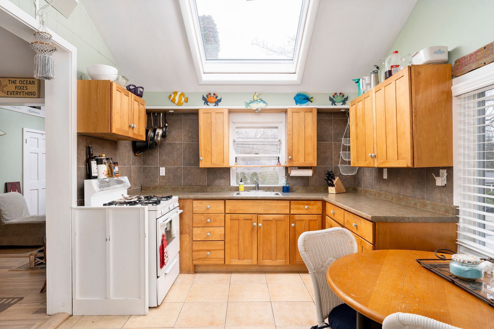 2 Bedroom, 2 bath light filled kitchen, living room with vaulted ceiling and a beautiful working fireplace, formal dining room. New oak flooring. Recently renovated primary bathroom with lovely tile, gorgeous countertops and glassed in shower. Walk in closet in primary bedroom. Great outdoor dining and seating/ lounging areas on multi-level paver patios. Brand new built-in, SS barbeque. Half a block to the bay and marina and a quick ride
