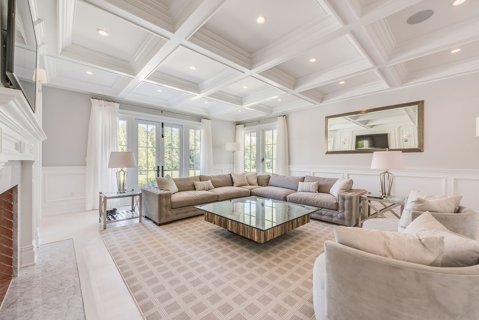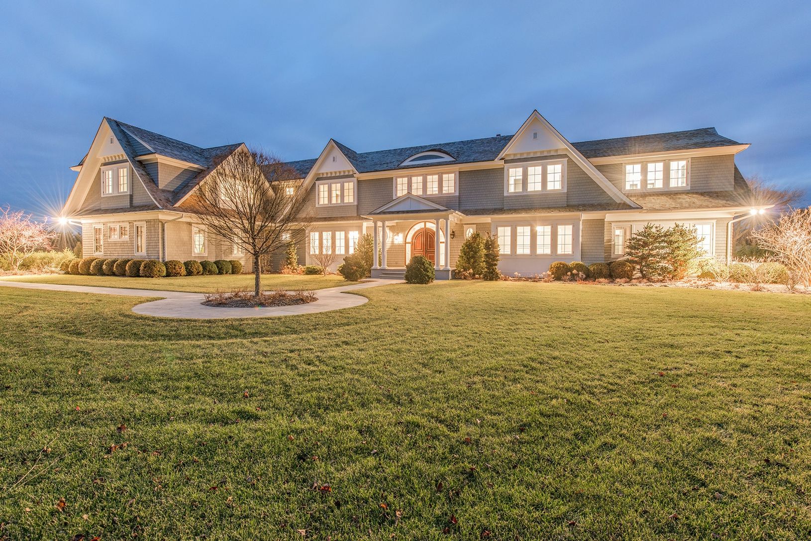 Sited on 2.6 +/- south of the highway acres, this spectacular Hamptons estate offers 17,578 square feet of living space, featuring high quality finishes throughout with twelve bedrooms, twelve and one-half baths in the main house, a double height foyer, a great room, a family room, a living room, a gourmet kitchen, a library, a media room, three fireplaces, a finished lower level that includes a wine cellar, sauna, theater, staff quarters and