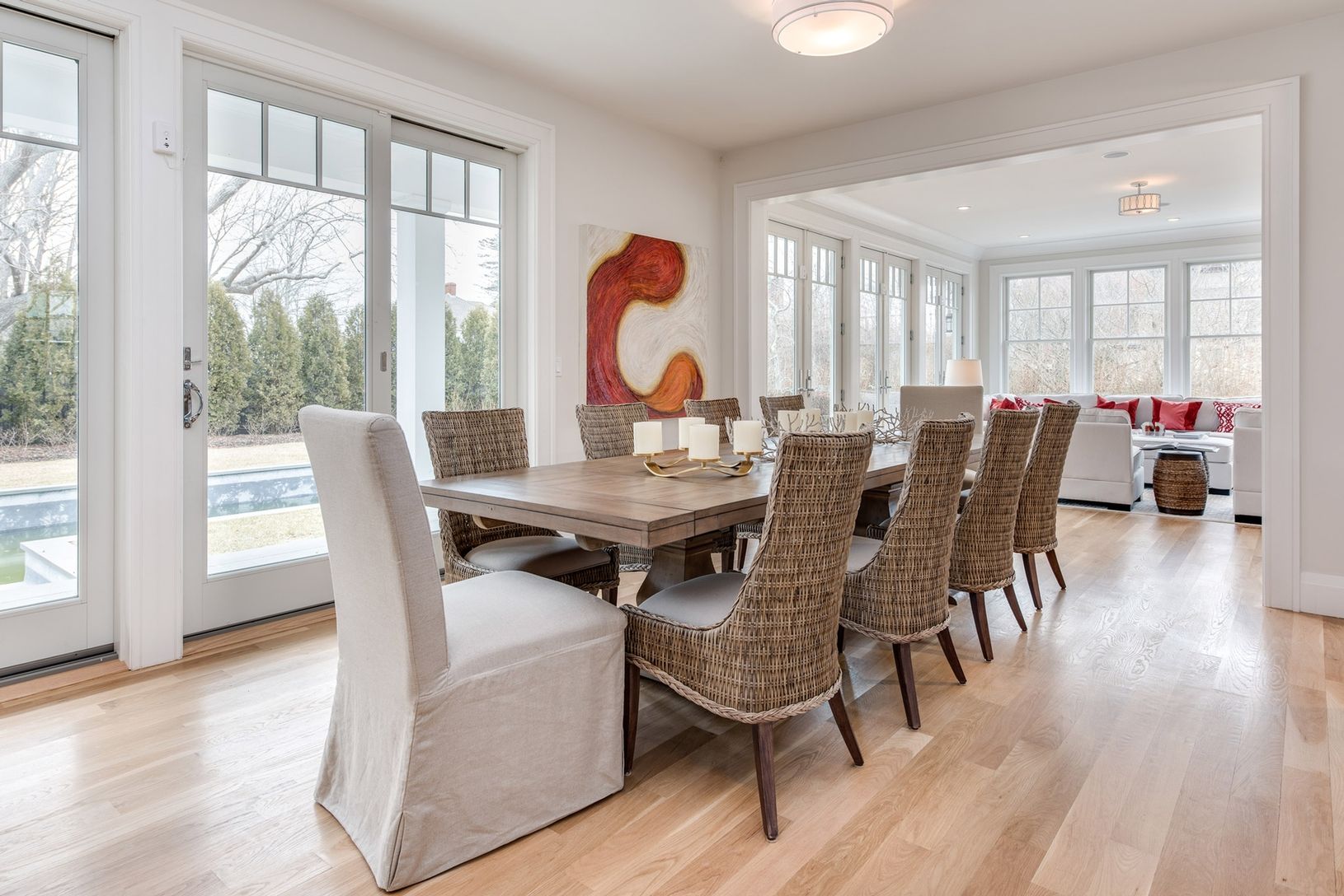 In the heart of Southampton Village, this pristine new construction 5,000+/- sq. ft. traditional home blends echoes of Southampton's colonial history with open, light-filled interiors and all the amenities for fine 21st century living. Columned front and rear bluestone porches add to the air of elegance. Throughout the home, white walls and ceilings reflect light through the rooms, warmed by wood floors and stair rails, and enhanced by gracefu
