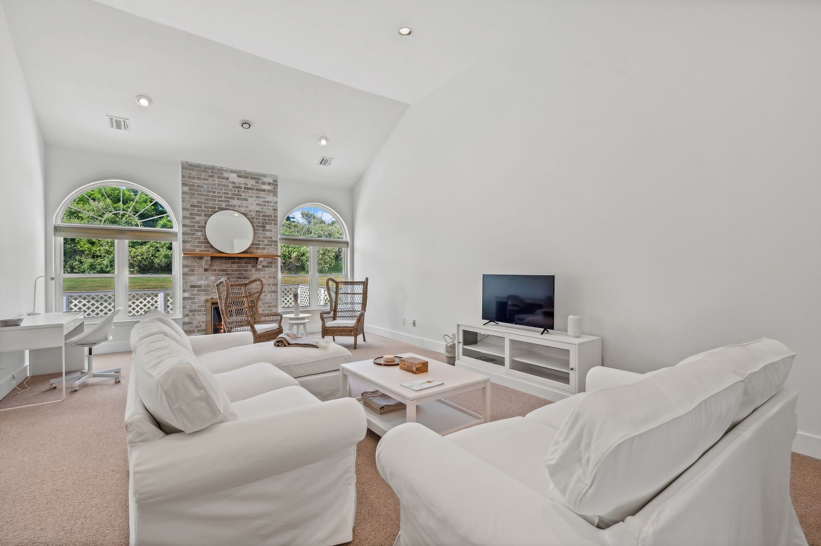 Welcome to your dream condo in the Hamptons, a luxurious newly renovated one-story townhouse nestled within a serene private community. This exceptional end unit promises a lifestyle of comfort, style, and convenience, offering an array of features that cater to the most discerning tastes. The cathedral ceiling, adorned with skylights, creates an open and bright ambiance, while a striking floor-to-ceiling fireplace serves as a captivating cent