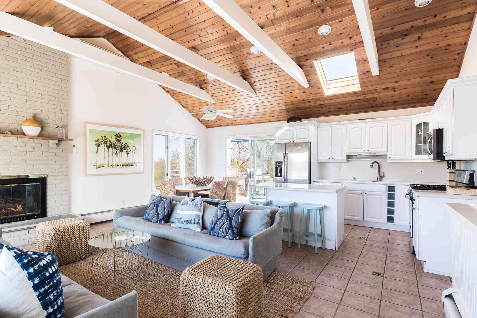 Be central from this 3 bedroom 2.5. bath two story 1728 sq.ft. beach house with peek-a-boo lake views abutting the 30+acre Steppingstones Pond Preserve. Relax within the cathedral ceiling living/dinning space, central island kitchen, den, fireplace, tile floors, awning covered decks, detached garage, landscaped grounds, large yard, air condoning and outdoor shower. Turn key and ready for 2022 summer occupancy just minutes to Montauk Downs Sta