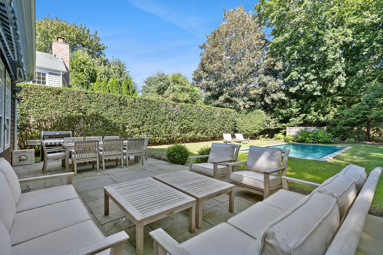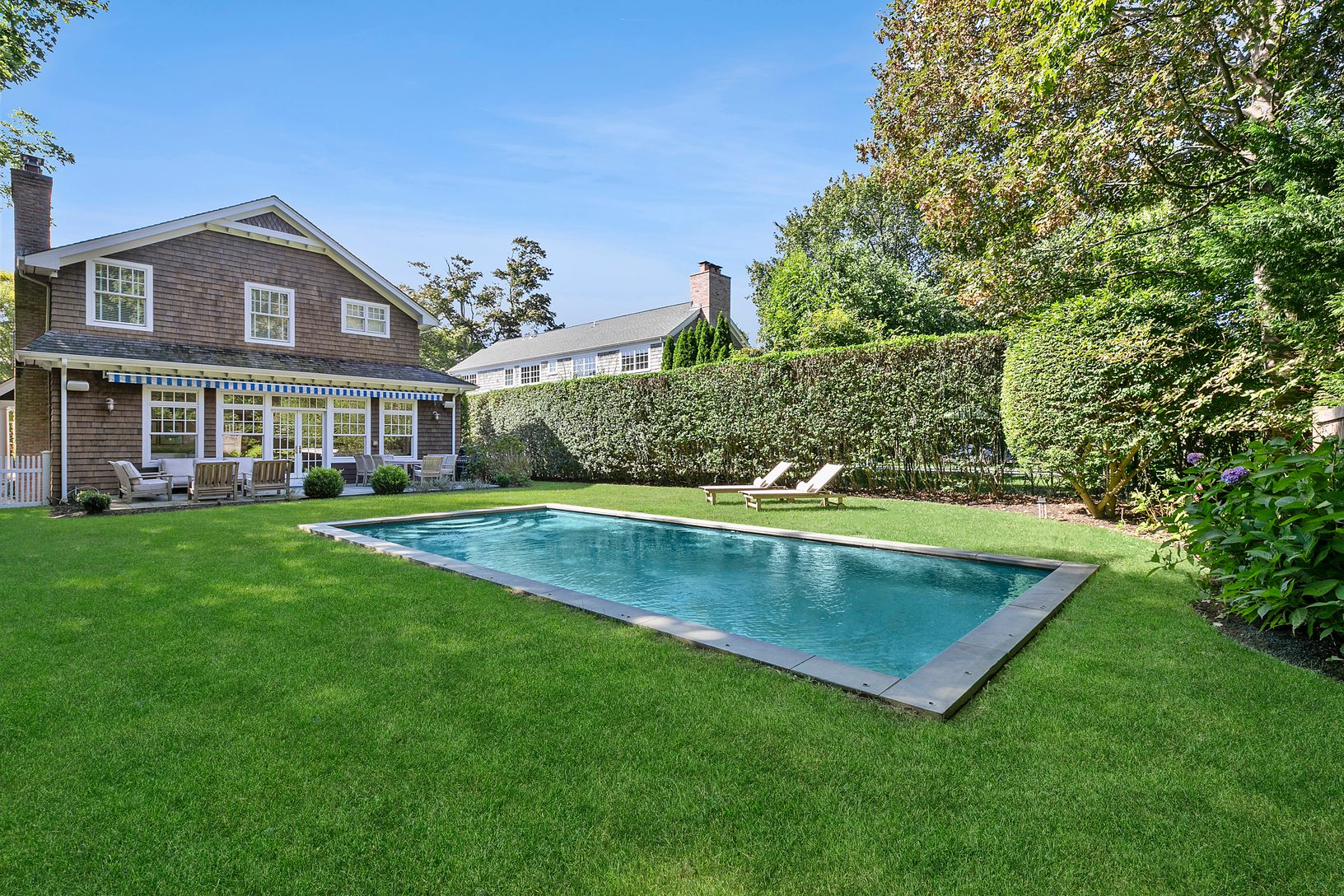 Enjoy the Hamptons All Year Round at this beautifully designed, 3500sf Traditional home, centrally located in the heart of Southampton Village. Now available for Year Round Rental. Featuring 5 bedrooms, 4 full baths, a formal dining room, gourmet kitchen with marble countertops, generous 1st floor guest suite, sun filled great room with wood burning fireplace and french doors overlooking the patio, garden and pool, 1st floor laundry room and