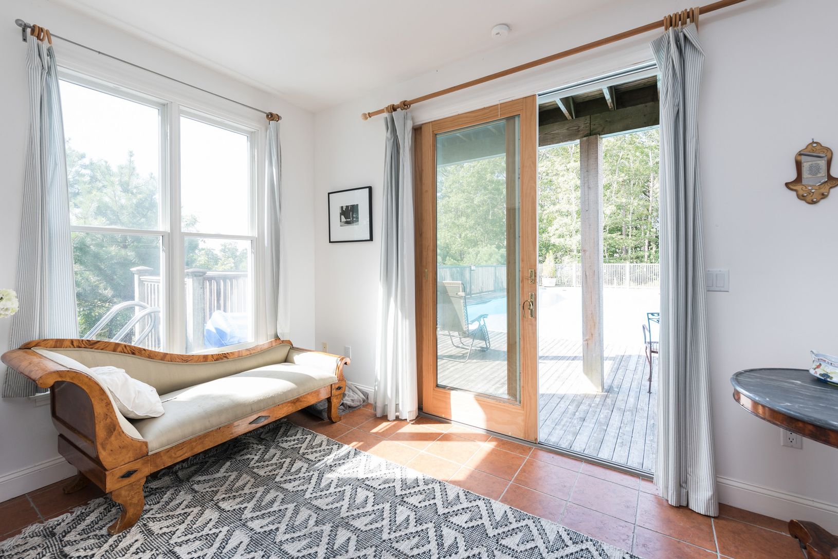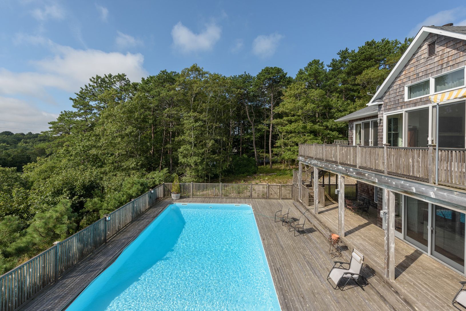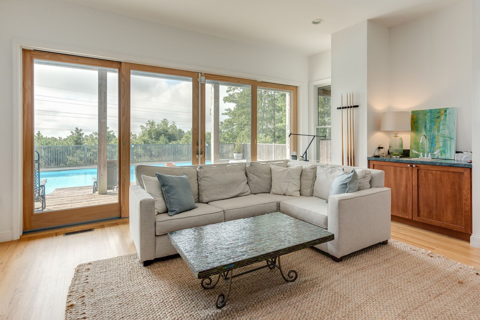 Set on one of the highest points in the Hamptons, overlooking Bridgehampton, enjoy a fabulous scenic view of farm fields stretching to the Atlantic Ocean. This home offers three-plus bedrooms, four and one-half baths, an additional separate two-story pool house with full bath and a studio/office or wonderful artist's den to pen that great novel. There is a pool table in the large family room, and a well-equipped gym for indoor recreation on th