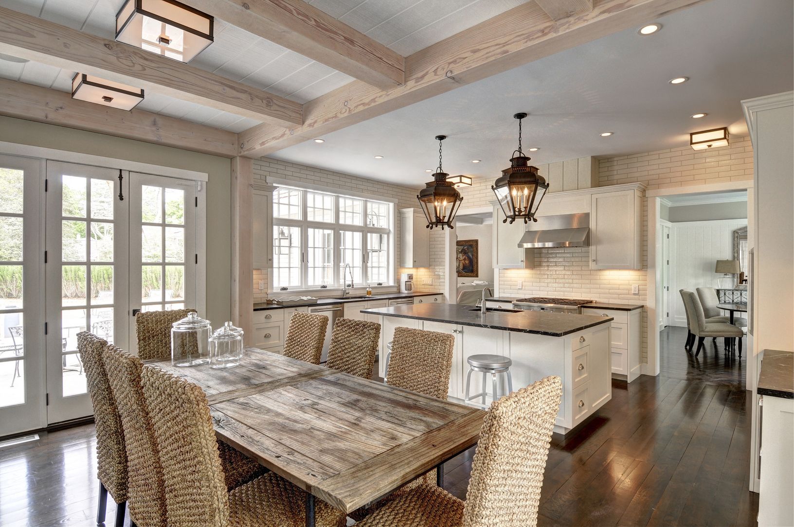 This Yankee Barn Homes Farmhouse is just on the edge of the village, yet tucked away on 1.1 acres. Just nearing completion, this home offers 7 bedrooms, 7 full baths, and 2 half baths. A great open home with sunken living room with masonry fireplace and attached sunroom, large eat-in kitchen with breakfast room, and formal dining room. The master suite has vaulted beamed ceiling and grand master bath. The lower level has been finished with 10
