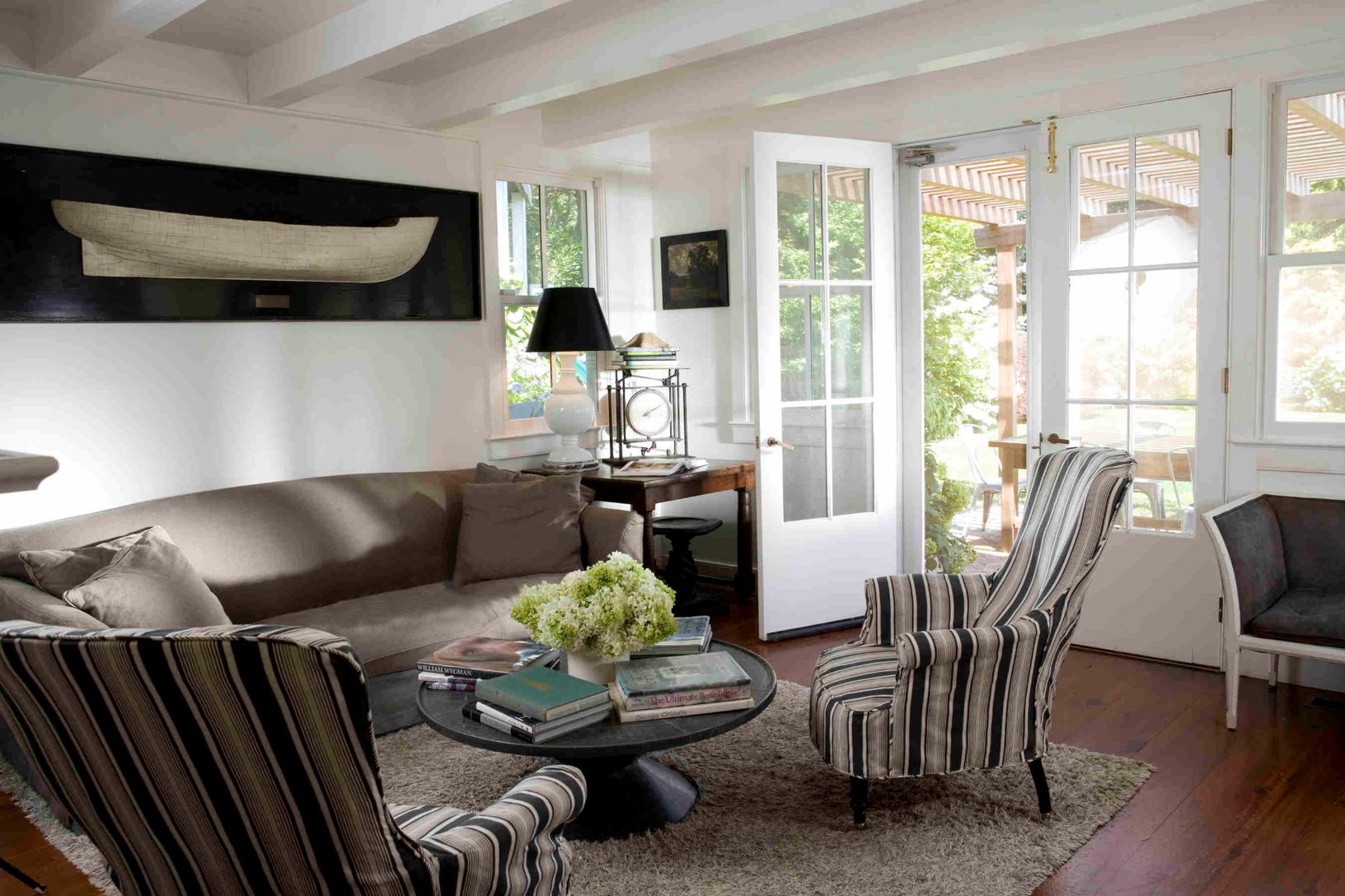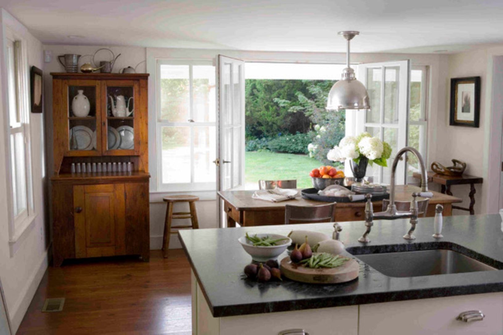 This totally charming Farmhouse Amagansett property has been exquisitely updated and renovated to create a warm and inviting home for today. From the wooden chairs on the front porch, to the retro kitchen, to the open living room with a wall of windows overlooking the garden and back deck, this house is gracious and welcoming. The lush, green backyard is set in beautiful gardens. Four bedrooms, 2.5 baths, with central a/c, and an outdoor showe