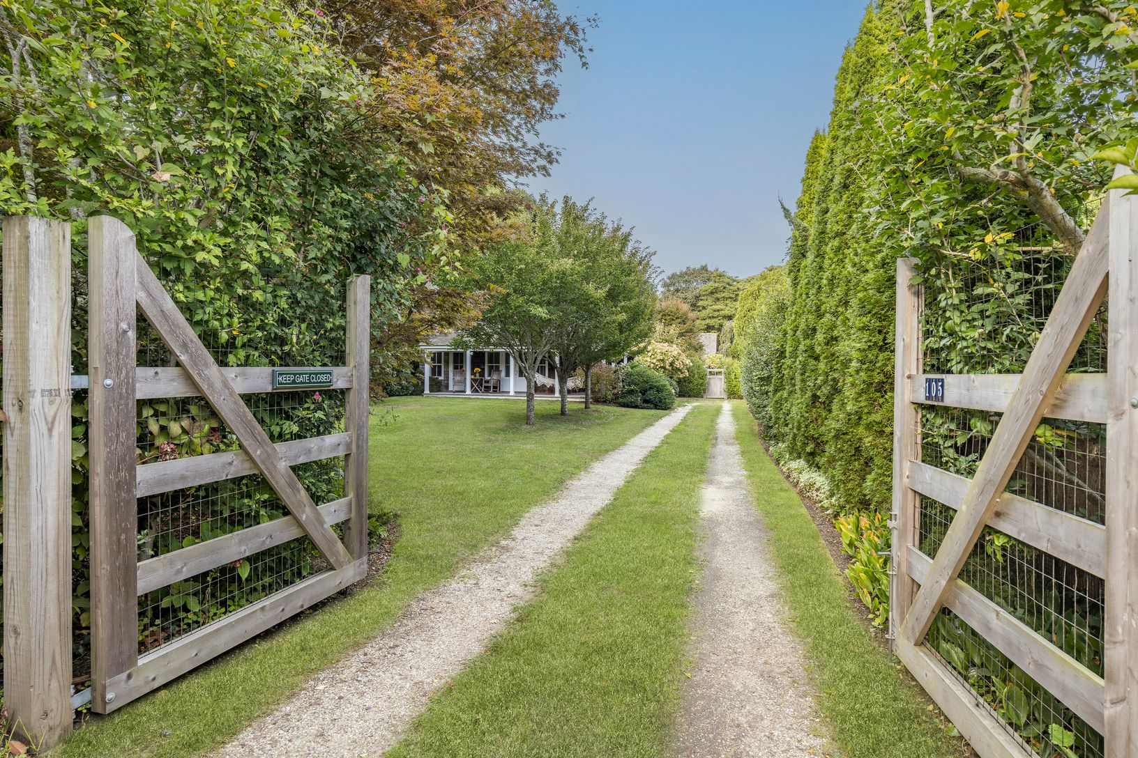 Nestled behind a gated private driveway in the highly sought after Amagansett Lanes, this enchanting 1925 home offers timeless charm combined with thoughtful modern updates. Surrounded by mature trees and featuring a welcoming wraparound porch, the property exudes serenity and understated elegance. Inside, the main level there is a beautifully designed layout ideal for relaxed beachside living. The eat-in kitchen seamlessly opens to the outdoo