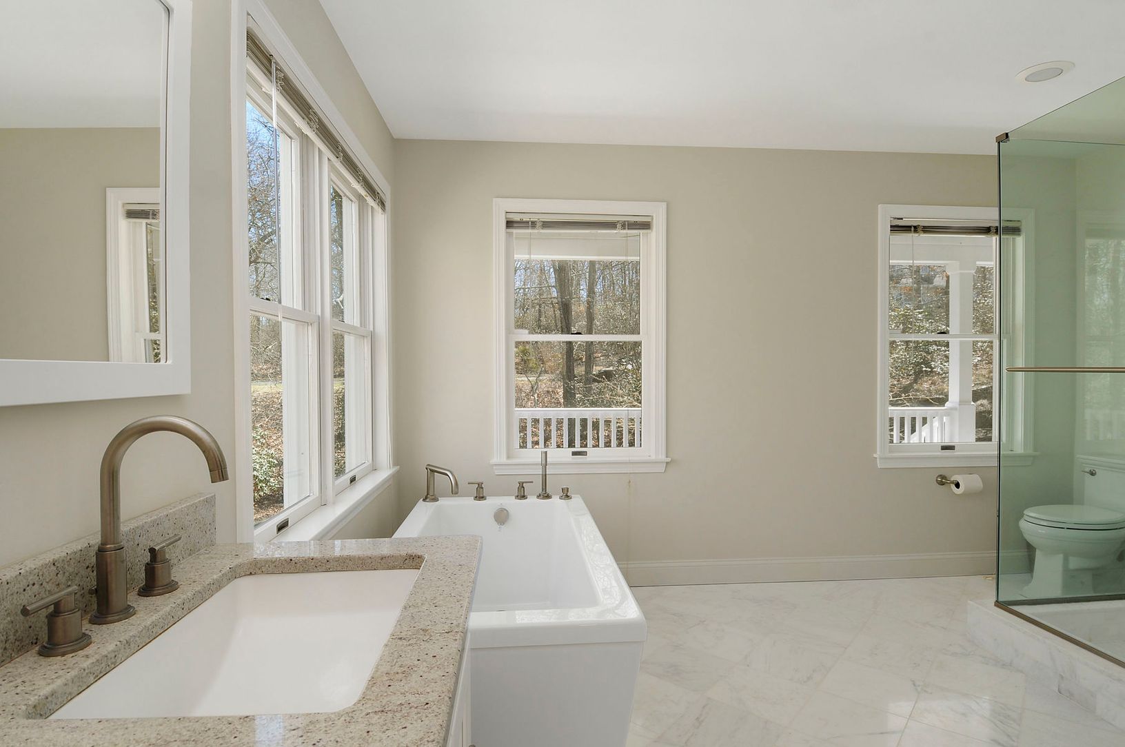 Situated on one private acre in Sag Harbor's exclusive Northside Hills community just off Deerfield Road this newly renovated 5 bedroom, 4.5 bath home has a new marble and stainless steel kitchen.The living room with wood burning fireplace has many large windows making it an open airy and light filled home. A main level master suite has a sleek bath with soaking tub and large, glass- enclosed shower. Ample closet space in every bedroom fulfil