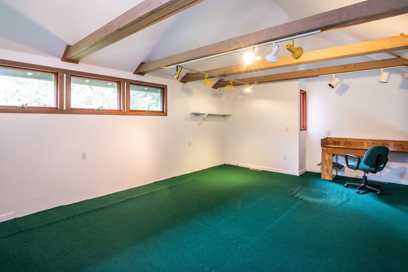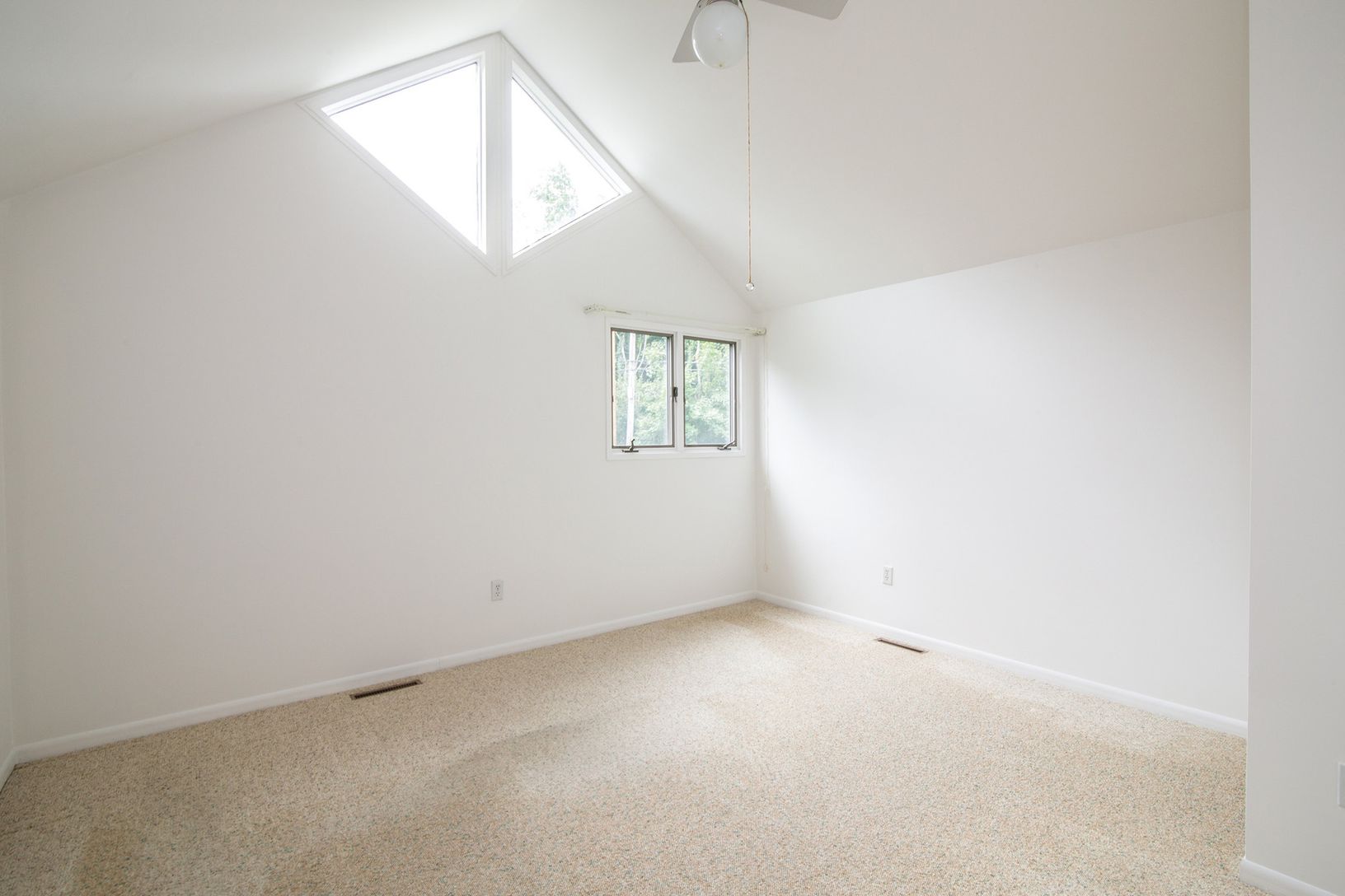 Located a stone's throw from South Ferry, Sag Harbor, and with an association beach this spacious contemporary is a wonderful opportunity. Vaulted ceilings invite natural light through skylights throughout the home. The first floor has living and dining areas, a clean kitchen and half bath, cedar accents, sunroom, wood-burning stove, and laundry, as well as a master bedroom. The second floor has a loft area currently used as an office, and sec