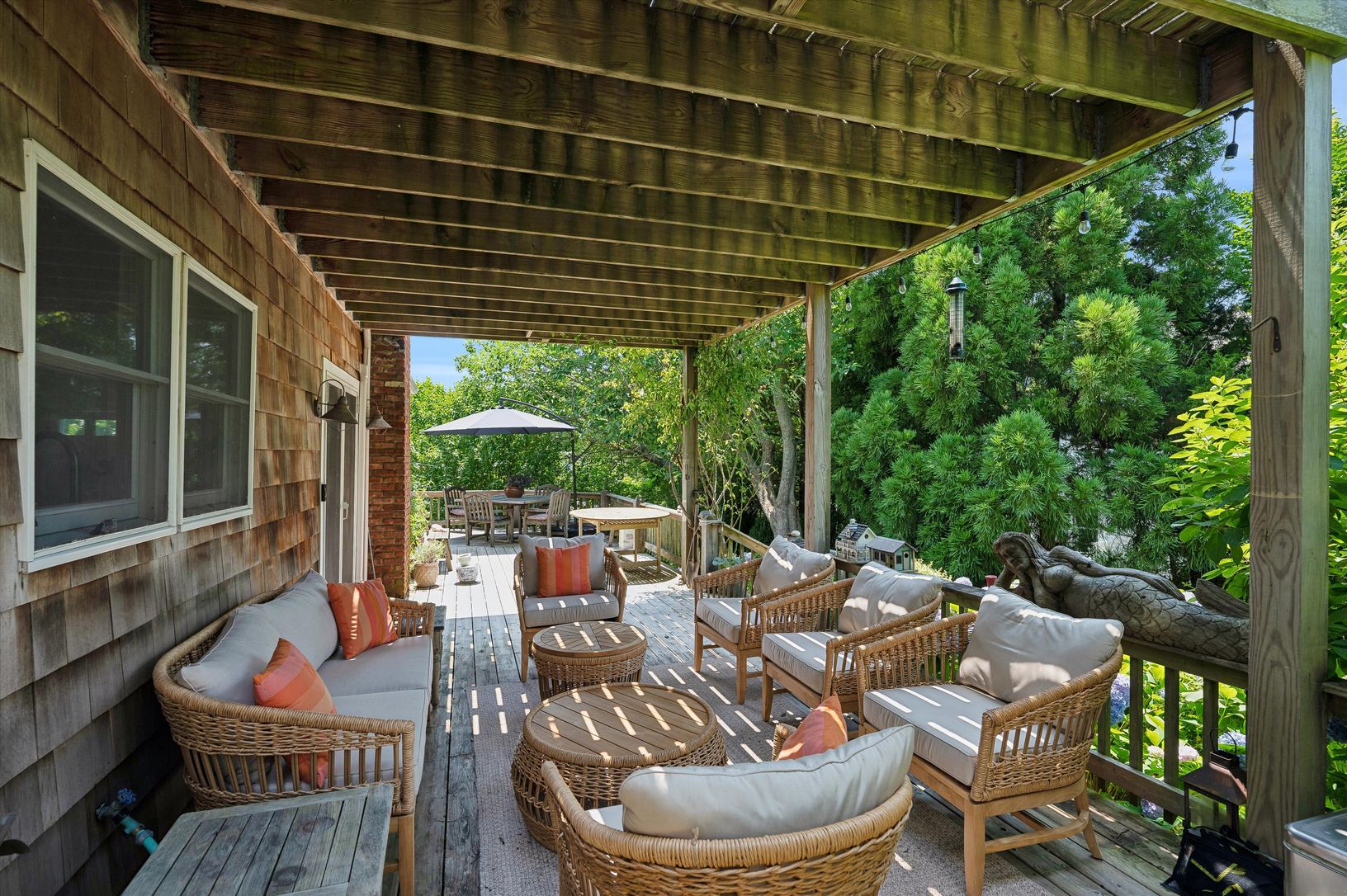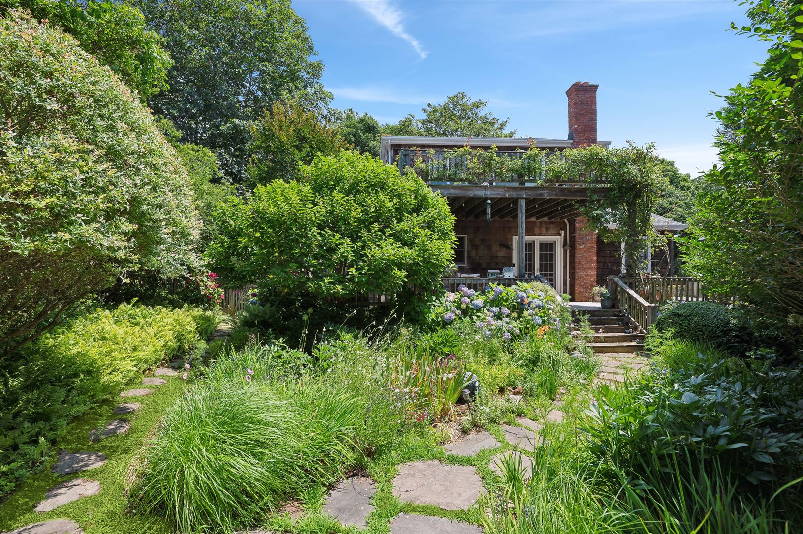 Nestled near Fort Pond Bay, this newly listed Montauk property is surrounded by lush gardens and numerous outdoor spaces, epitomizing the coveted Montauk lifestyle. The home's prime location offers easy access to the Bay, Duryea's, the Montauket, and the Montauk train station, ensuring convenience at every turn. This beautiful residence features 3 bedrooms and 3 baths, complemented by a spacious living area, a den/office, a TV room/studio, and