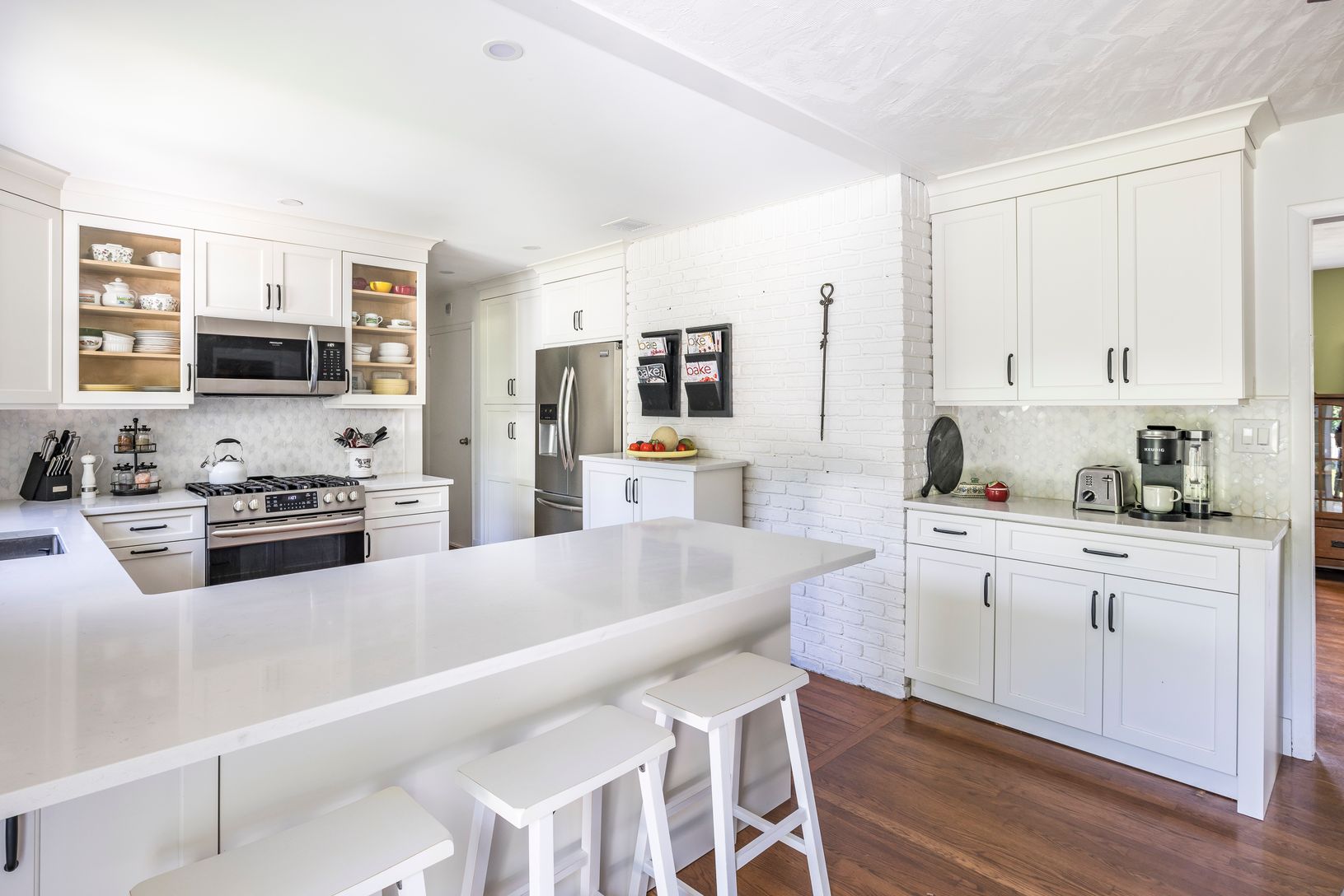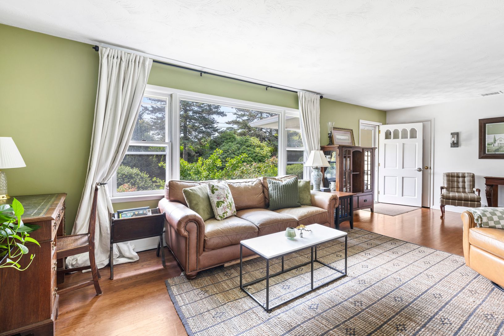 New to Market - a charming 3-bedroom, 2-bath ranch set on .51 acres of meticulously maintained grounds featuring specimen trees, and vibrant flowers, creating a picturesque and serene setting. Step inside to the spacious living room, complete with a cozy wood-burning fireplace, perfect for relaxing evenings. The newly renovated, open-concept kitchen and dining area features quartz countertops, ample cabinetry, stainless steel appliances, and a