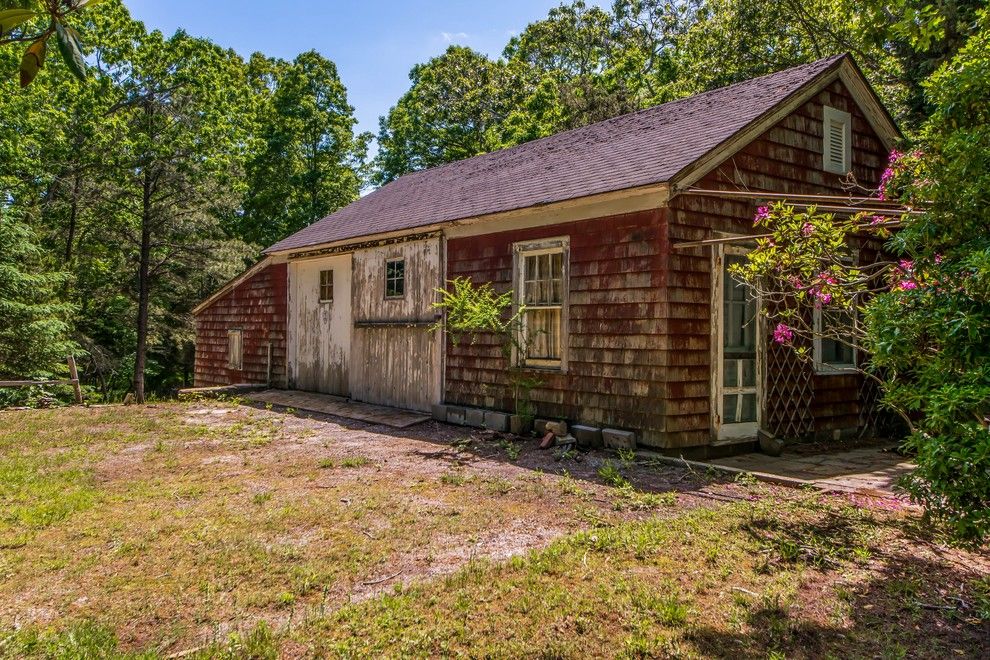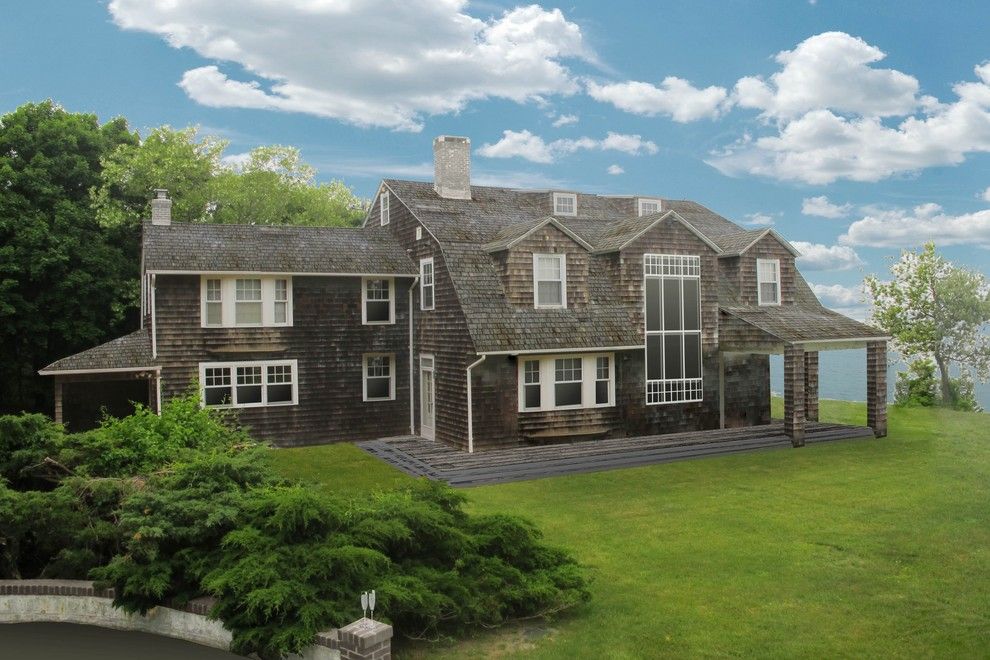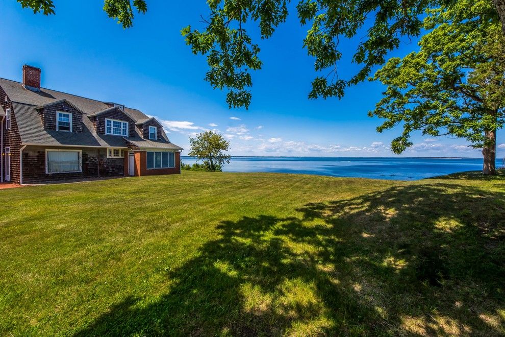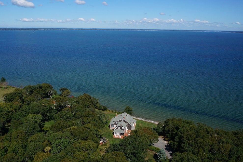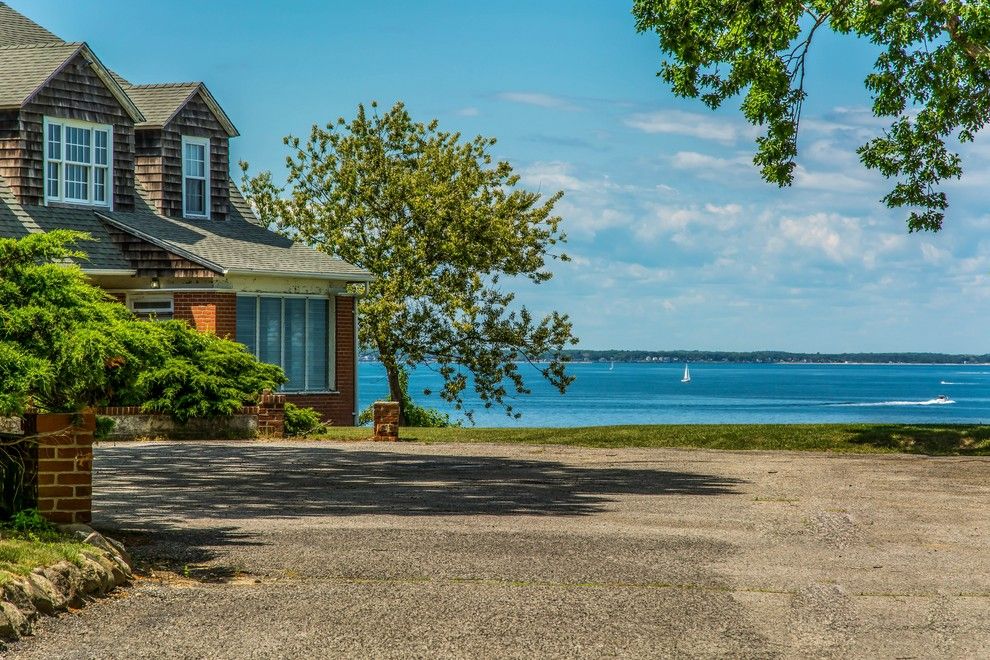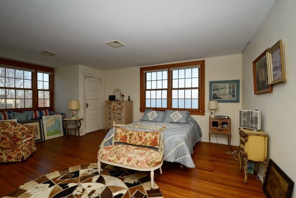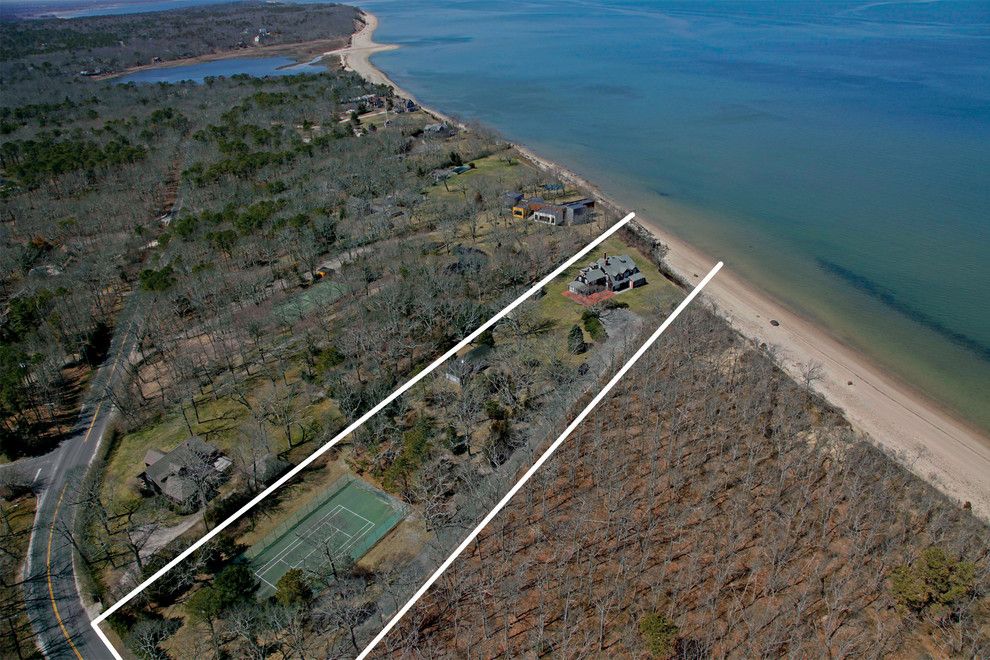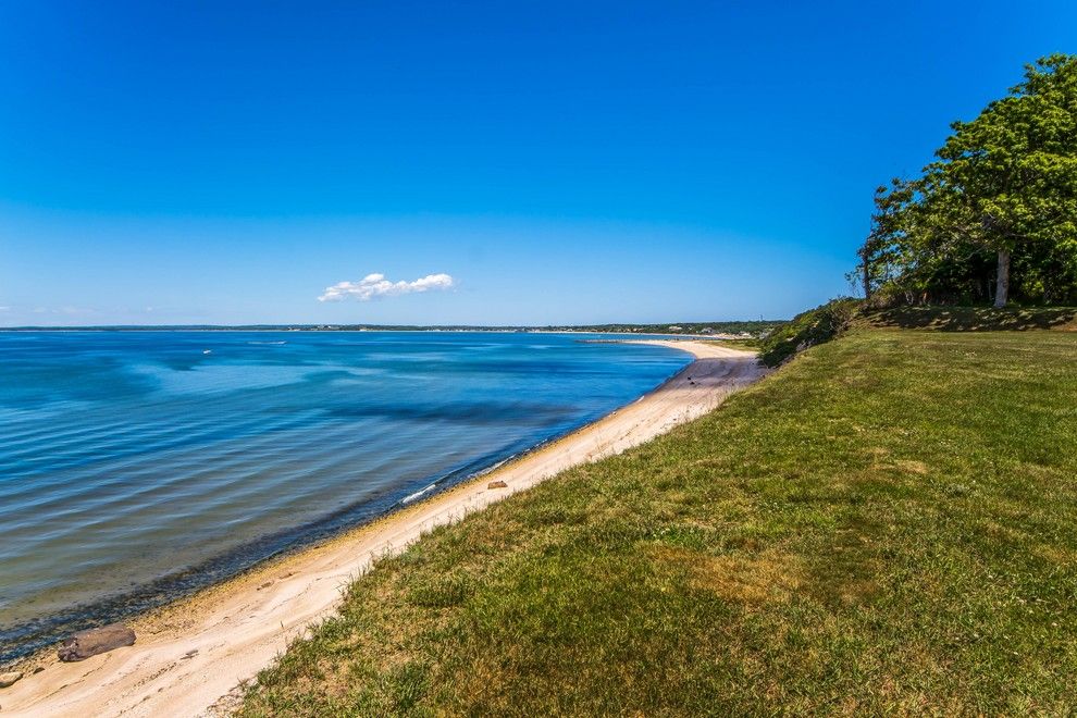Rarely do properties as unique as this bygone era estate sited majestically on the bluff, overlooking the expansive Peconic Bay, become available. Located in the old-world, New Ground historical district of Hampton Bays, this 2.9 acre property has been with the same owner for over 35 years. One enters through a gated entrance driveway that gradually rises passing the tennis court, carriage house, pool, barns ending at the crest of the bluff fr
