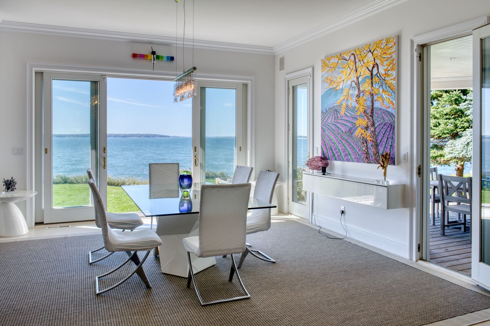 STUNNING BAYFRONT Local Art Filled Home, with Mooring (Boat Lovers Welcome), Private BAY Beach and 5 min WALK to VILLAGE! Over 4500 sqft of immaculate contemporary, gorgeous furnishings with a local artist's own artwork make this home perfect for your own enjoyment and summer entertainment. The only bayfront rental fully set up for your boating and swimming needs. Light, bright and mint, 4 super spacious bedrooms, 4 baths (200-degree water vie