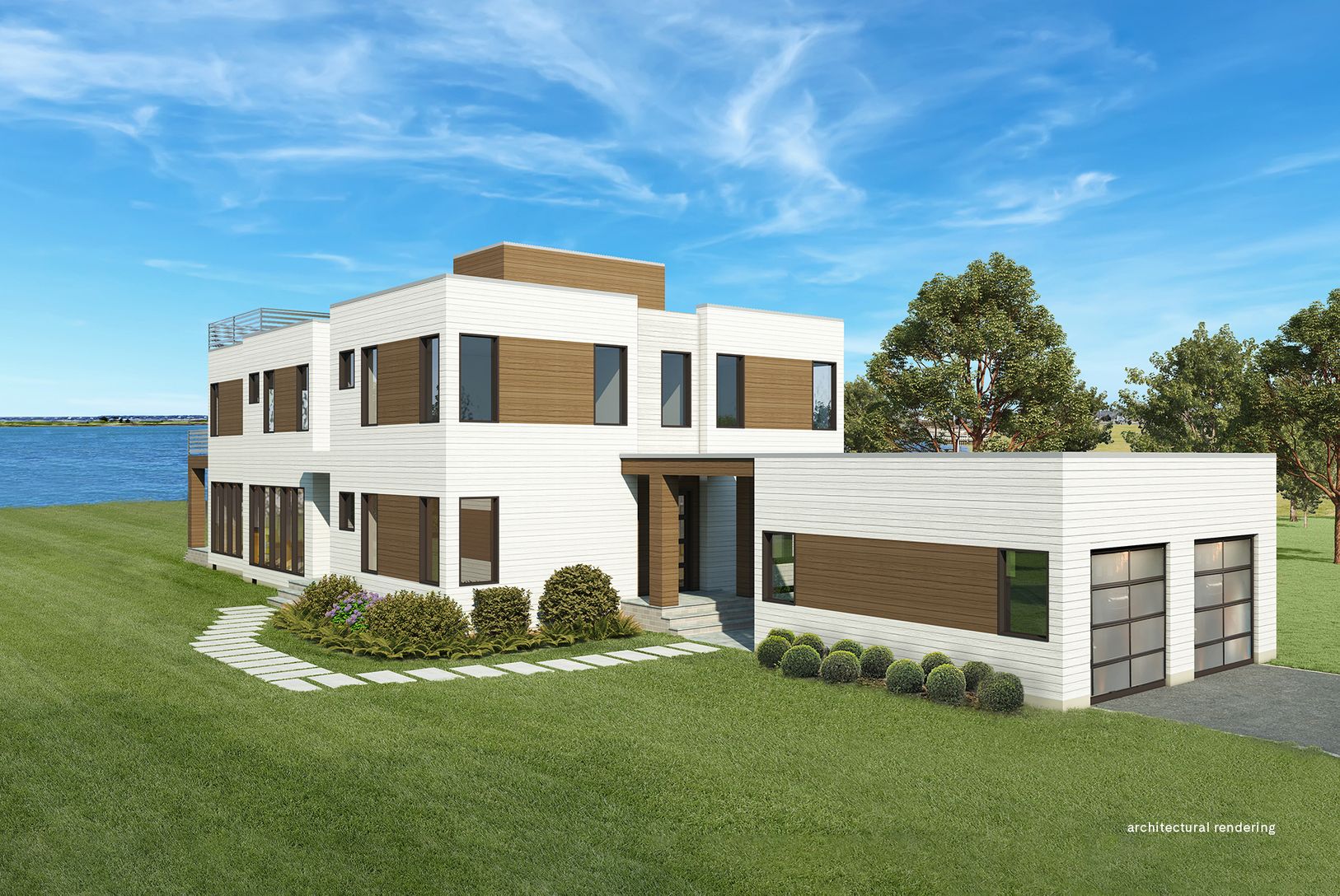 Exceptional waterfront setting on Middle Pond in Southampton, a protected body of water opening to Shinnecock Bay. Facing west for glorious sunsets over the water, the 0.50+/- acre Hamptons property features a bulk-headed waterfront and panoramic views in a uniquely beautiful peninsula setting. The pre-construction offering features an absolutely stunning 4,500+/- sf modern home with a spectacular waterside pool and spacious deck. The attentio