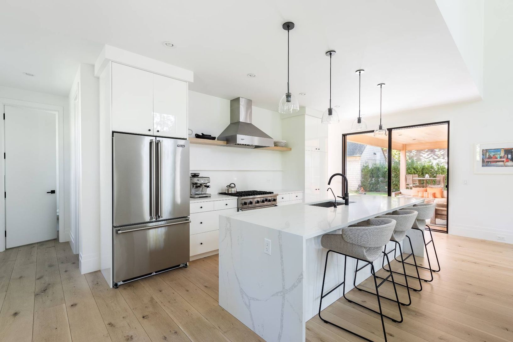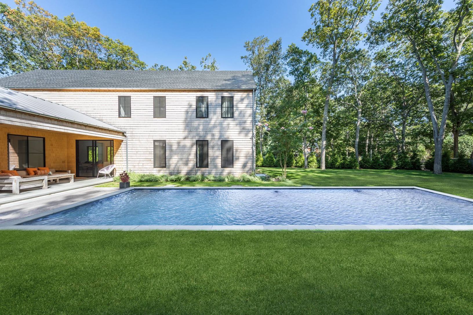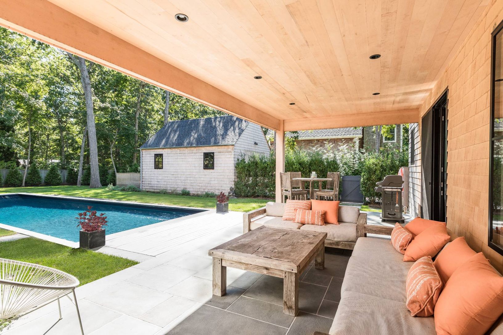 *Five bedrooms * Four and one half baths * .66 private acres *Built 2020 *Viking appliances *Heated gunite pool *Covered bluestone porch *Outdoor shower *Double-height Great room *Wide plank white oak flooring *Gas fireplace *Lower-level media room *Detached garage *Light filled with large windows *Private beach community *Access to marina