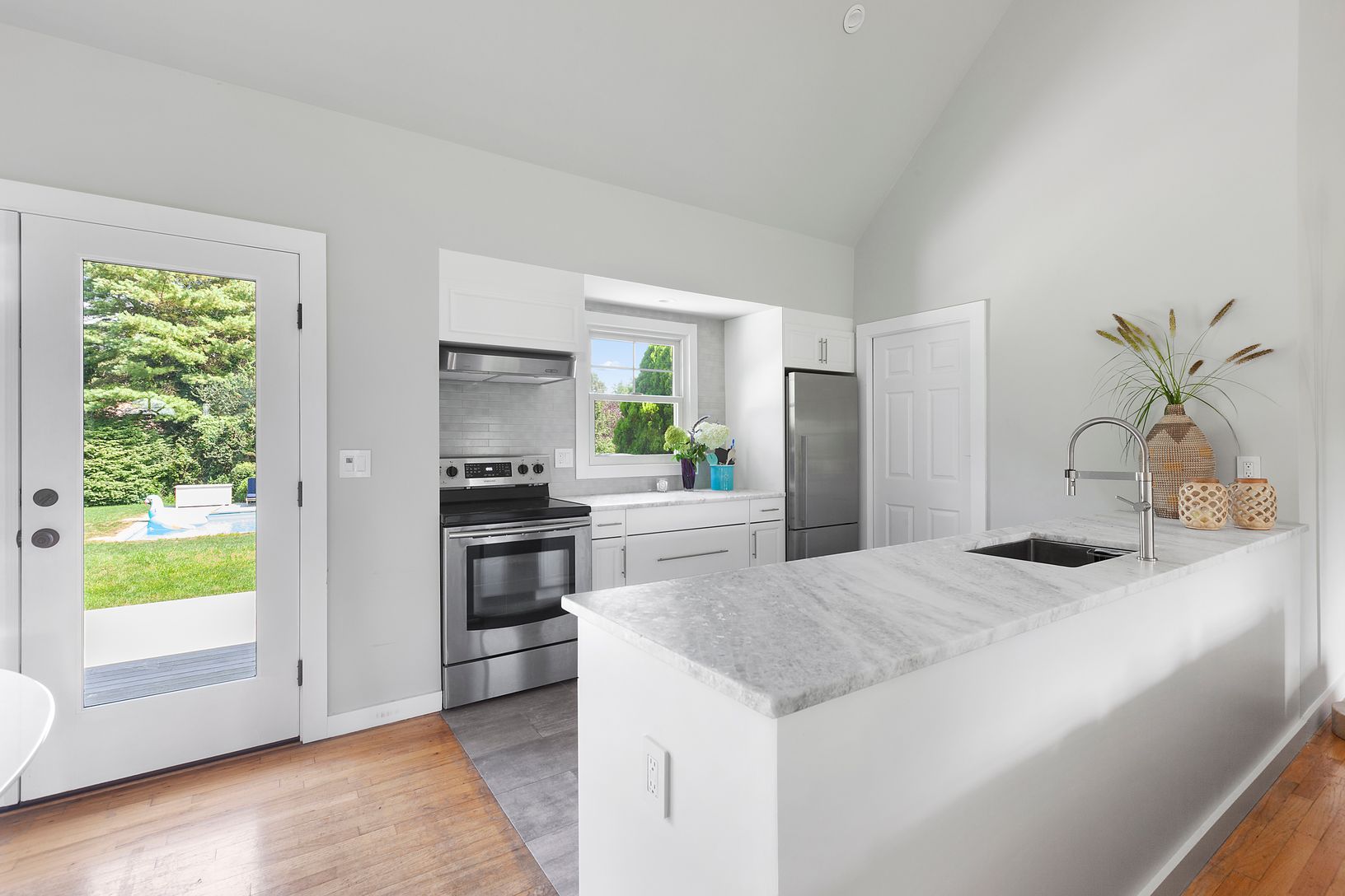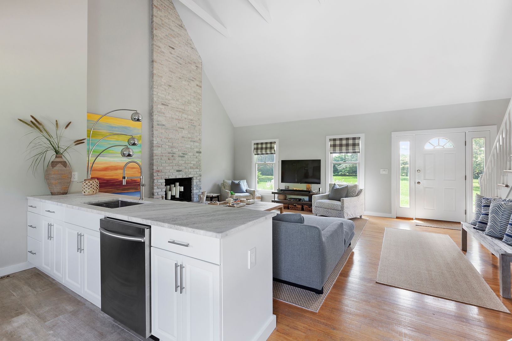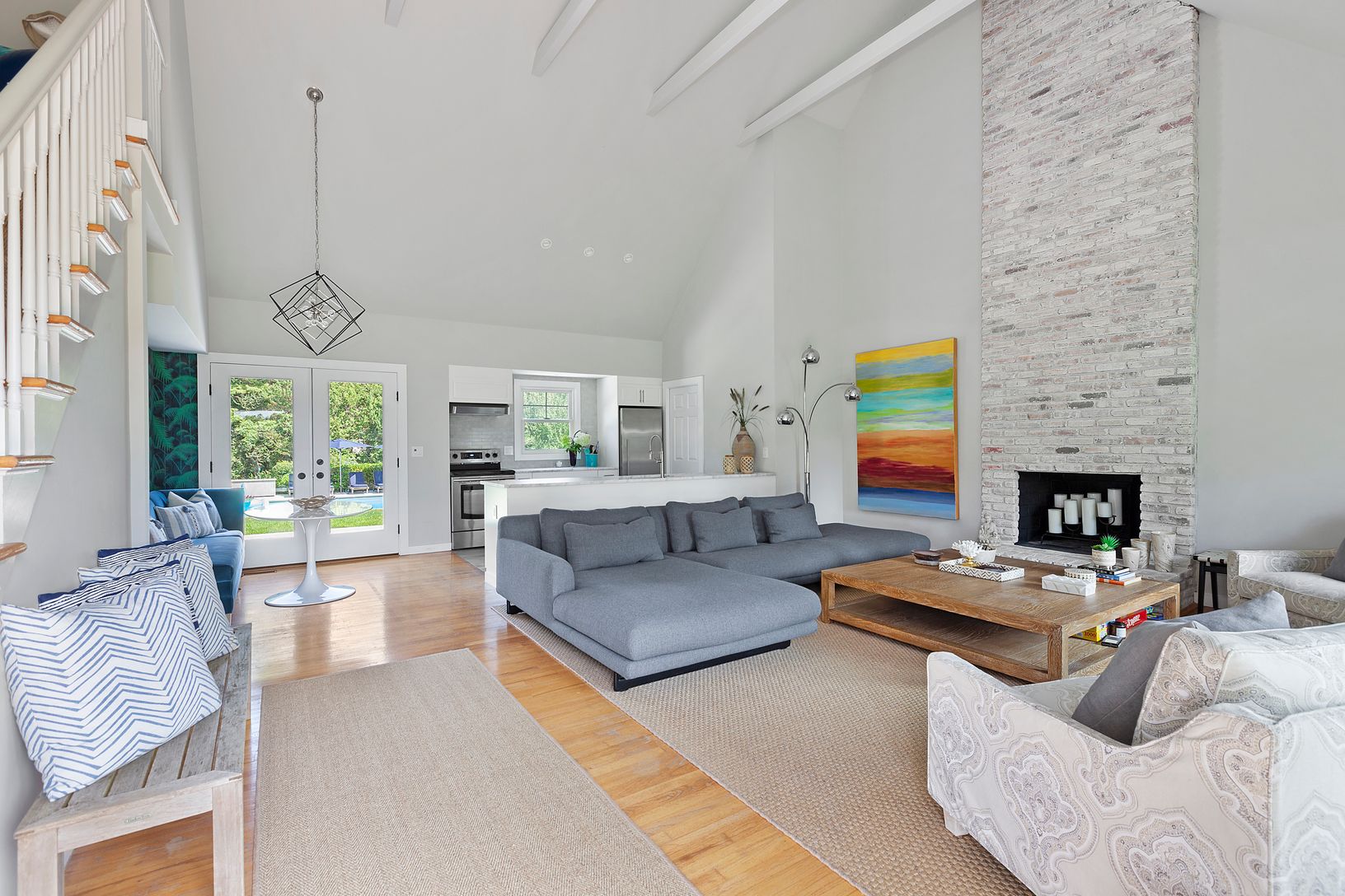 Just Listed! Experience the serenity of this charming cottage-style home nestled in the heart of Water Mill, on approximately an acre of beautiful grounds just outside Southampton Village! The 3 bedroom, 2 bathroom gem boasts soaring ceilings, a floor-to-ceiling fireplace, generous natural light, and an open floor plan leading to mahogany decking for seamless indoor-outdoor entertaining. The vaulted double-height living room adjoins a gracious