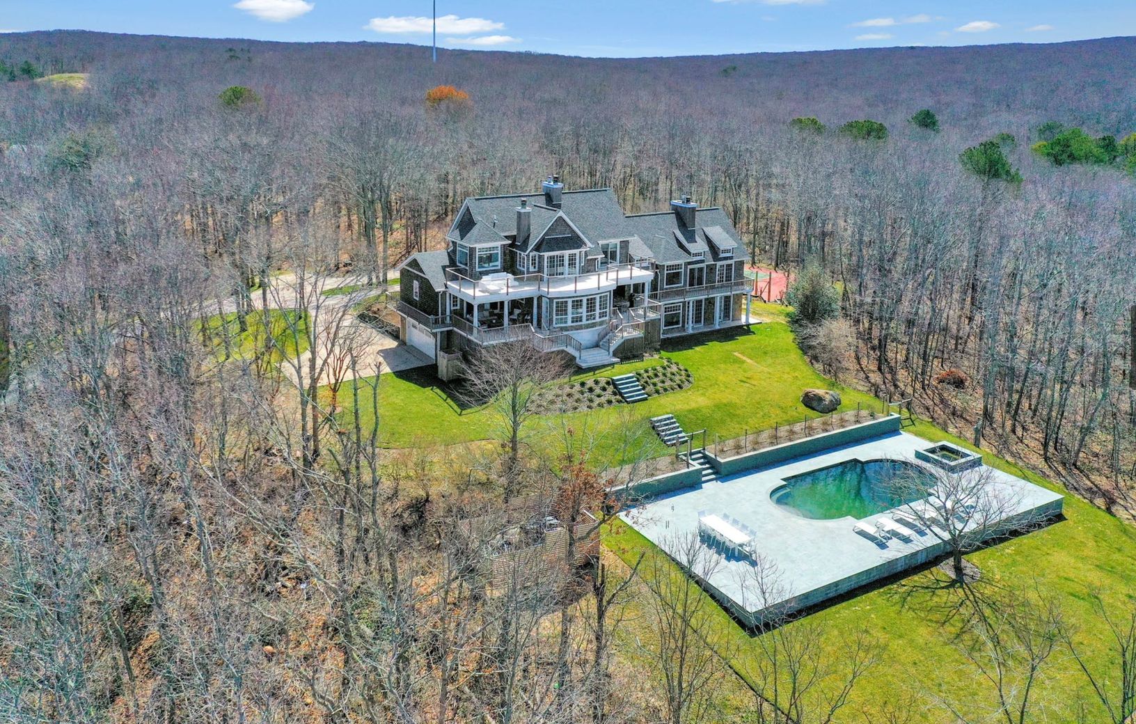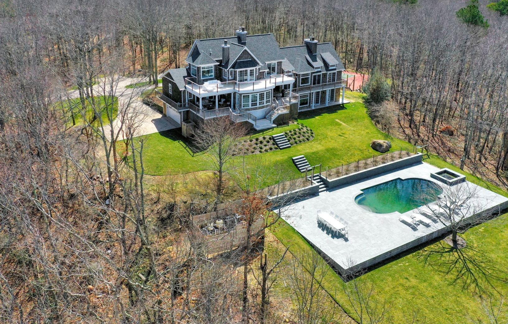 107 Stoney Hill Road, Sag Harbor, NY - This spectacular hill-top property, completely renovated in 2021, features a 6,000 +/- sf traditional home sitting on a 4.6 acre lot minutes to Long Beach, Sag Harbor Village and to Bridgehampton. The turnkey home offers 5 bedrooms, 5 full and 2 half baths plus bonus room and multiple entertaining spaces. Upon entering, the dramatic step-down foyer opens to a double height living room awash with natural l