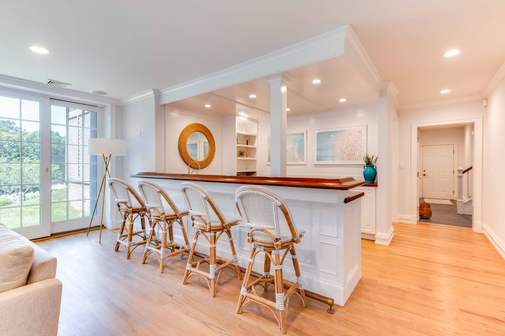 Approaching the gated entry, you will appreciate this dramatic home's seclusion, abutting 100 acres of reserve and privacy from neighbors, yet its close proximity to village life in Sag Harbor (4 min) and Bridgehampton (6 min). Situated on 4.8 spacious, hill-top acres, this elegant estate was totally renovated in 2021 and offers a 3-level 6,000 +/- sq. ft. home with 5 bedrooms, 5 full and 2 half baths. Upon entry, you are immediately greeted b