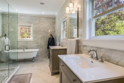 On a quiet street in the heart of Southampton Village, this exquisite and spacious traditional home, completely renovated in 2016, offers 8,143+/- sq. ft. on 1.02+/- acres, with seven bedrooms, all en suite, and seven and one-half baths. The soaring two-story foyer welcomes you to beautifully proportioned entertaining areas including the double height living room with vaulted ceiling and wood-burning fireplace, which flows to the formal dining
