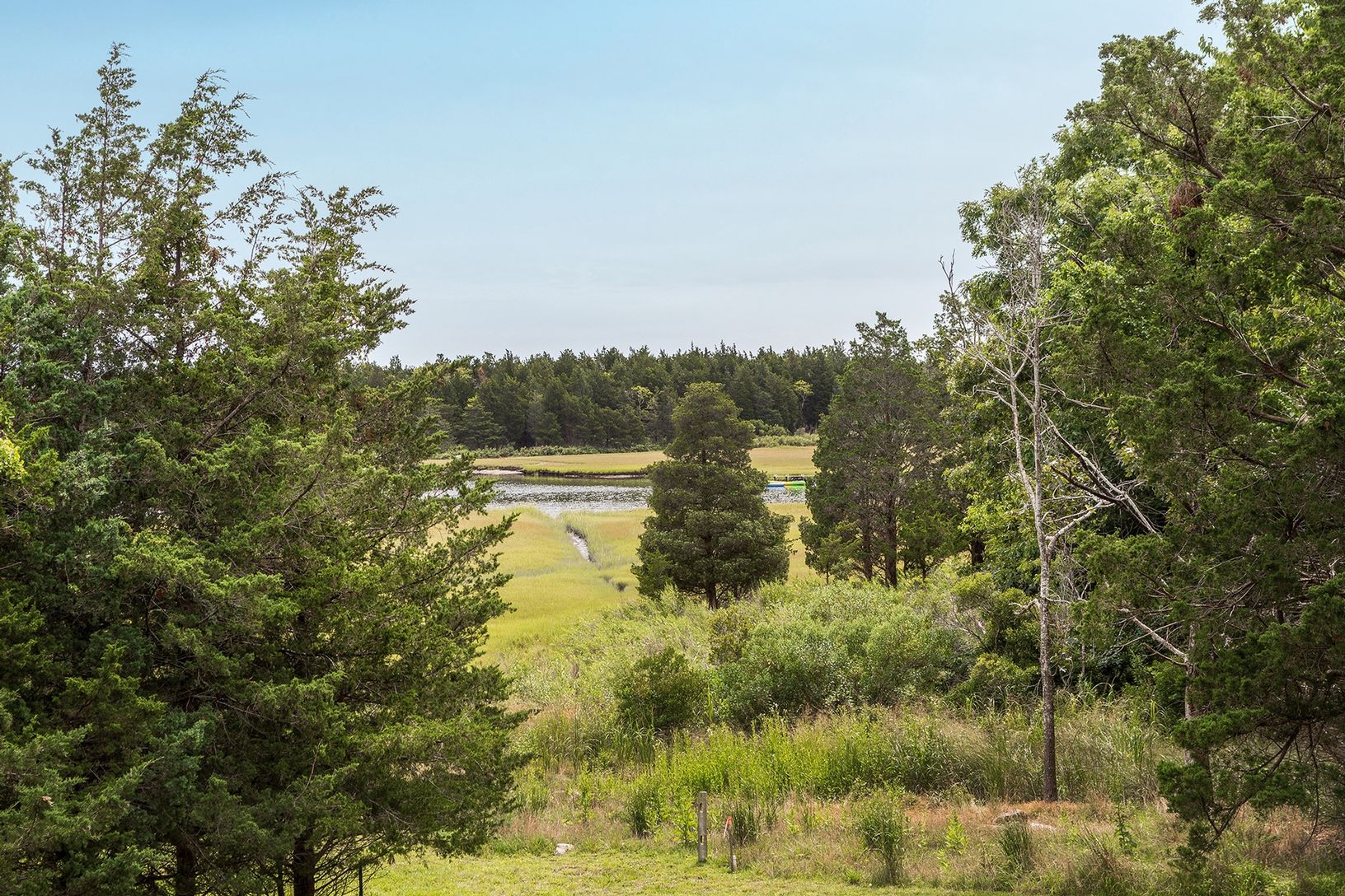 Experience blissful peace and serenity in this welcoming traditional home in the part of Springs that has been home to numerous artists. Located down a long driveway on a flag lot, the 4,500+/- sq. ft. home provides views across adjacent pristine preserved lands to Accabonac Harbor, where you have deeded water access. This builder's own home - expanded, updated and extensively renovated - has five bedrooms and five baths, including the light-