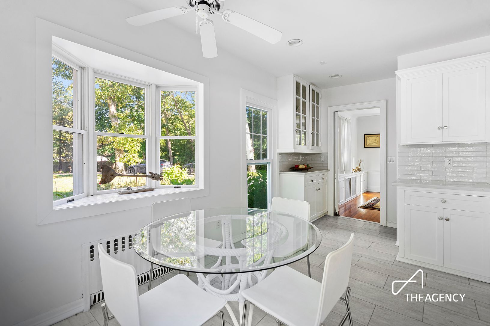 Inside the expansive sun-filled home is a large kitchen with breakfast area that