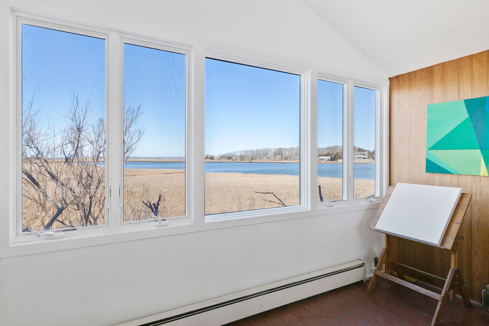 Directly on Accabonac Harbor with panoramic water views - private - yet wide open air space and vistas. Relax and breathe and enjoy the sun filled open water views and natural foliage that surrounds the entire property. House is a charming cottage with 3 bedrooms and 2 baths and separate artisit's studio that makes this an ideal retreat. A special place to paint, read, meditate or just enjoy life in nature. A true escape from the noise and