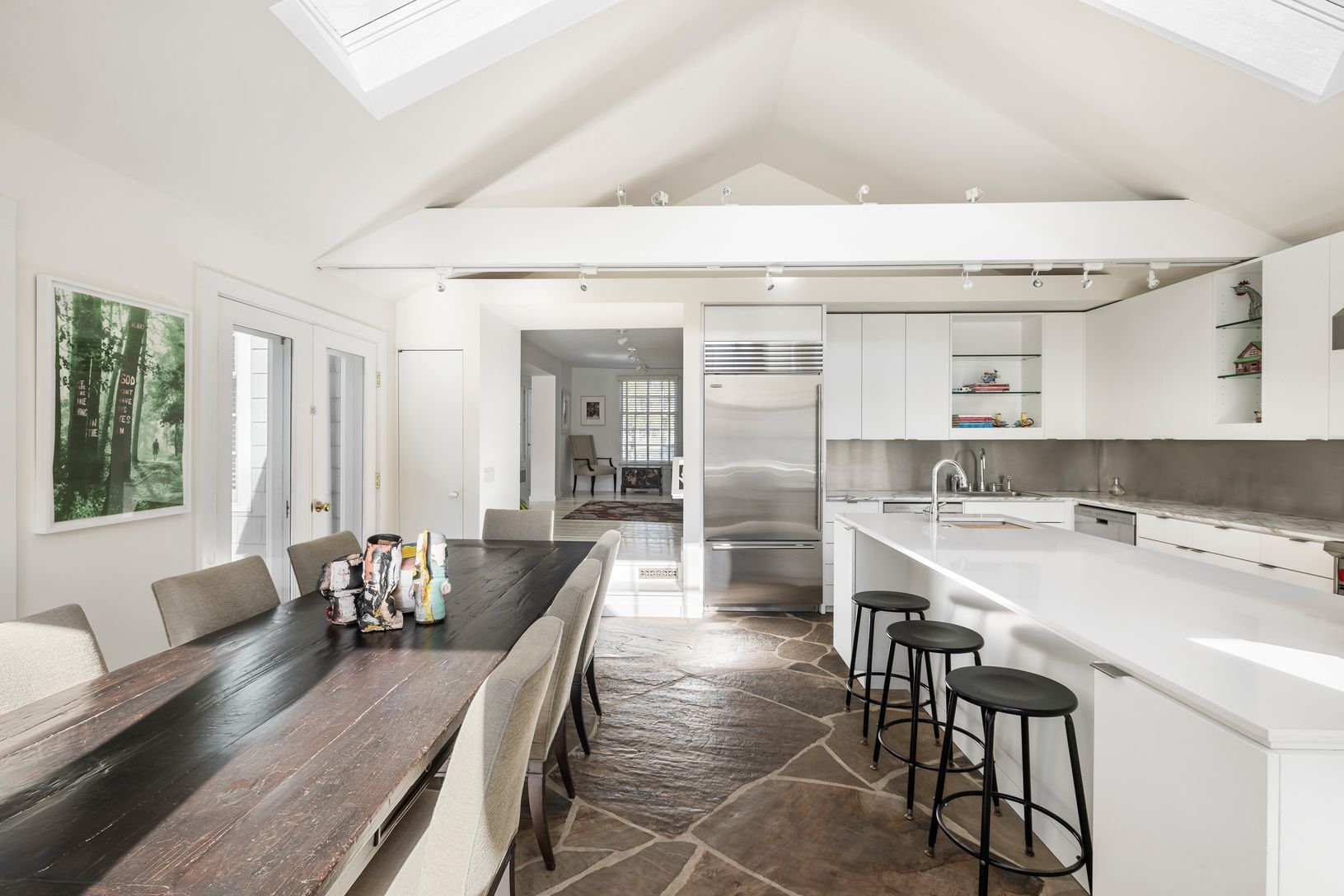 As published in House Beautiful, architect-renovated 100 year old converted stable on a quiet tree-lined lane in the heart of East Hampton Village with views over protected farmfields. Antique floors, 3 bedrooms, 2.5 baths, central air, fabulous skylit kitchen/dining with orchard stone floors opening to terrace overlooking park-like grounds with heated pool. A wonderful home for entertaining and a smart investment. Enjoy as is or plans in plac