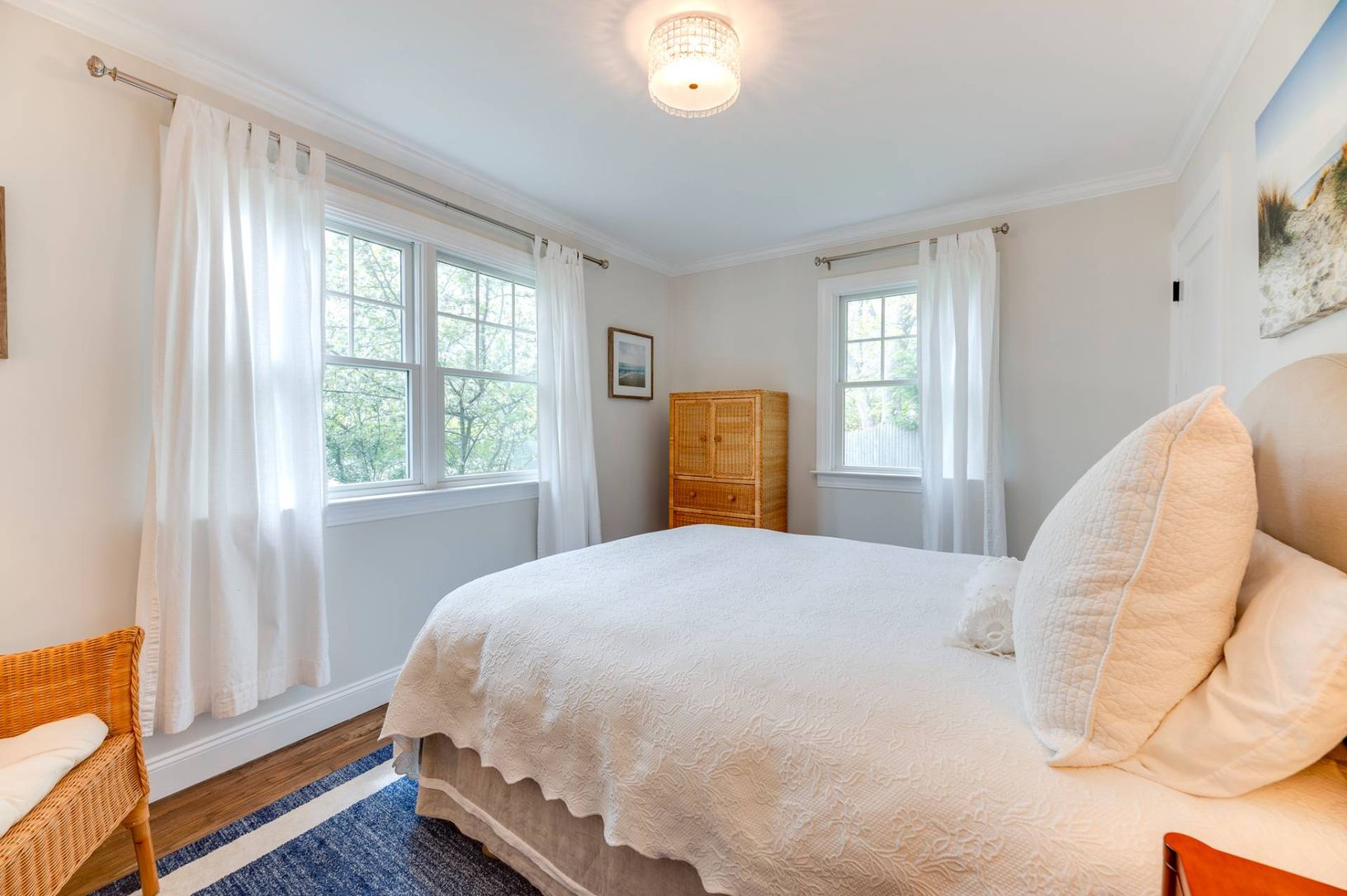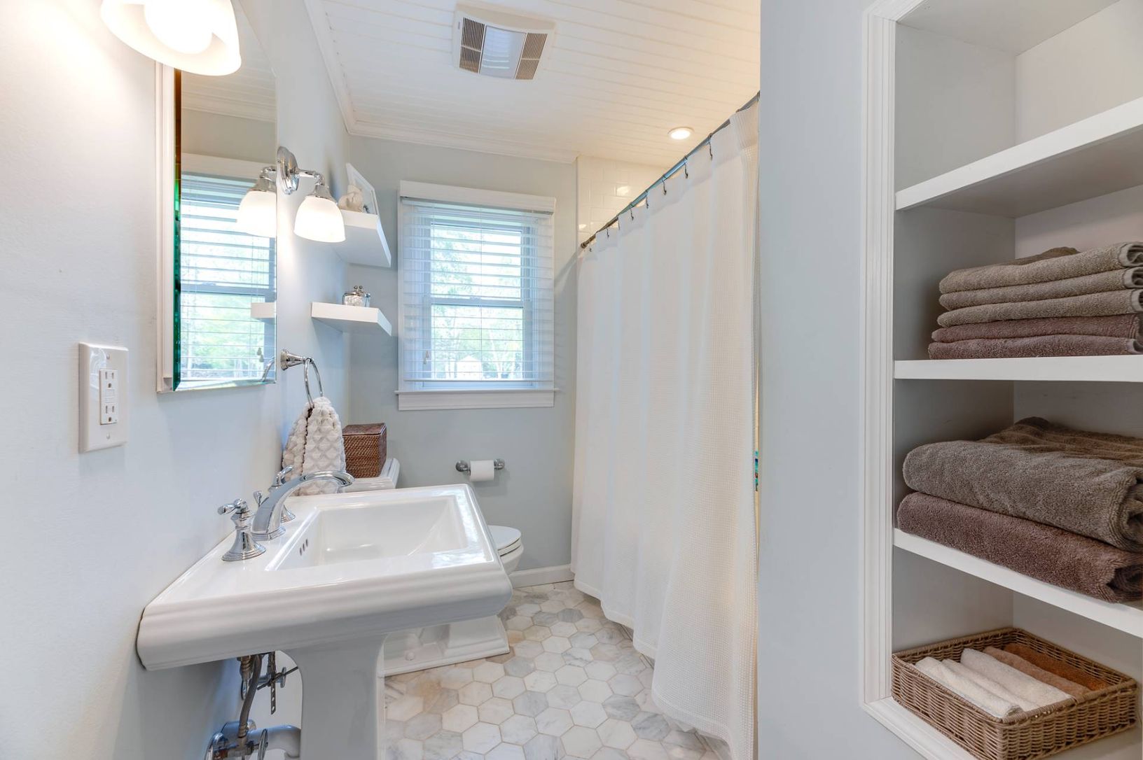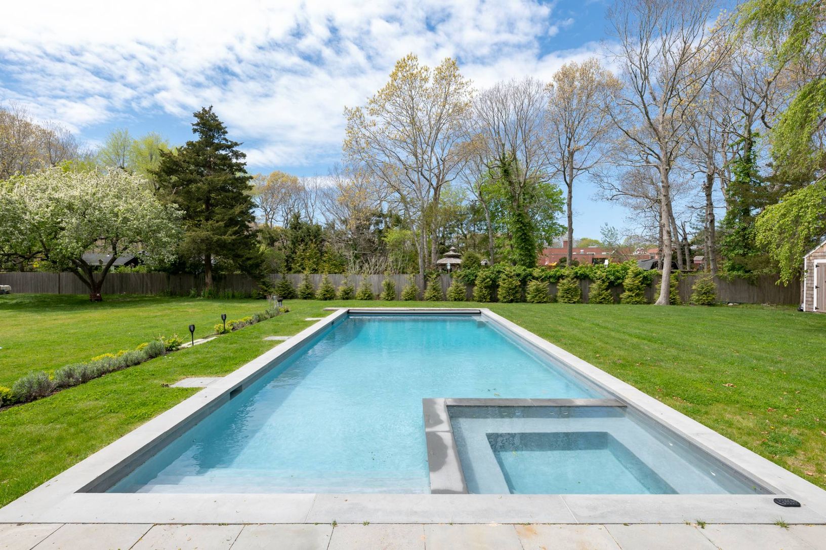 This pristine four bedroom, two bath home offers high ceilings and an open floor plan. The open concept invites you from a state of the art kitchen, to a light and bright living room, with a bonus space upstairs to retreat for some peace and quiet. Dine al fresco right off the kitchen and overlook a luxurious newly built heated gunite pool with spa and automatic cover - great for keeping the pool clean and swim ready and warm! The backyard is