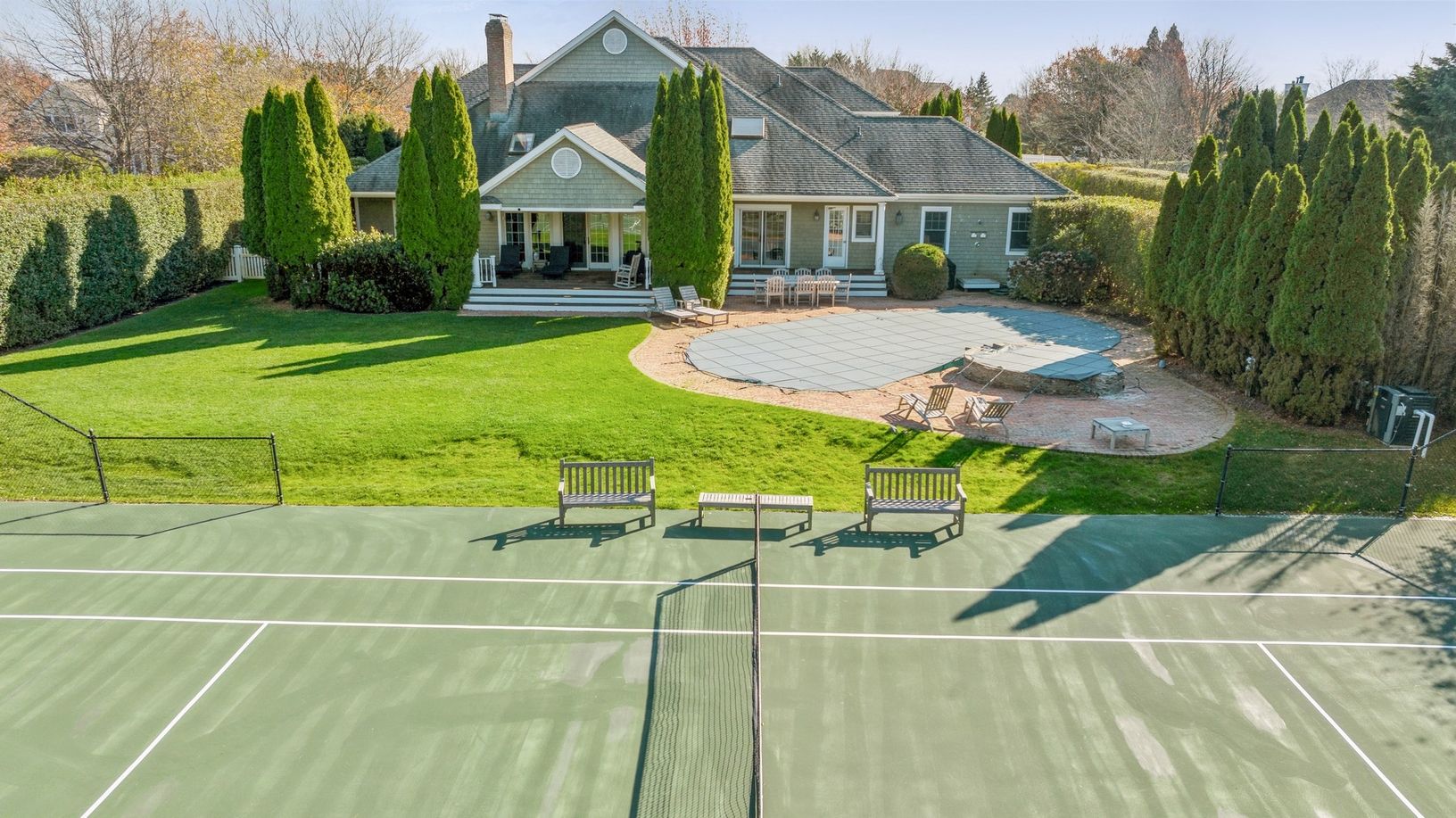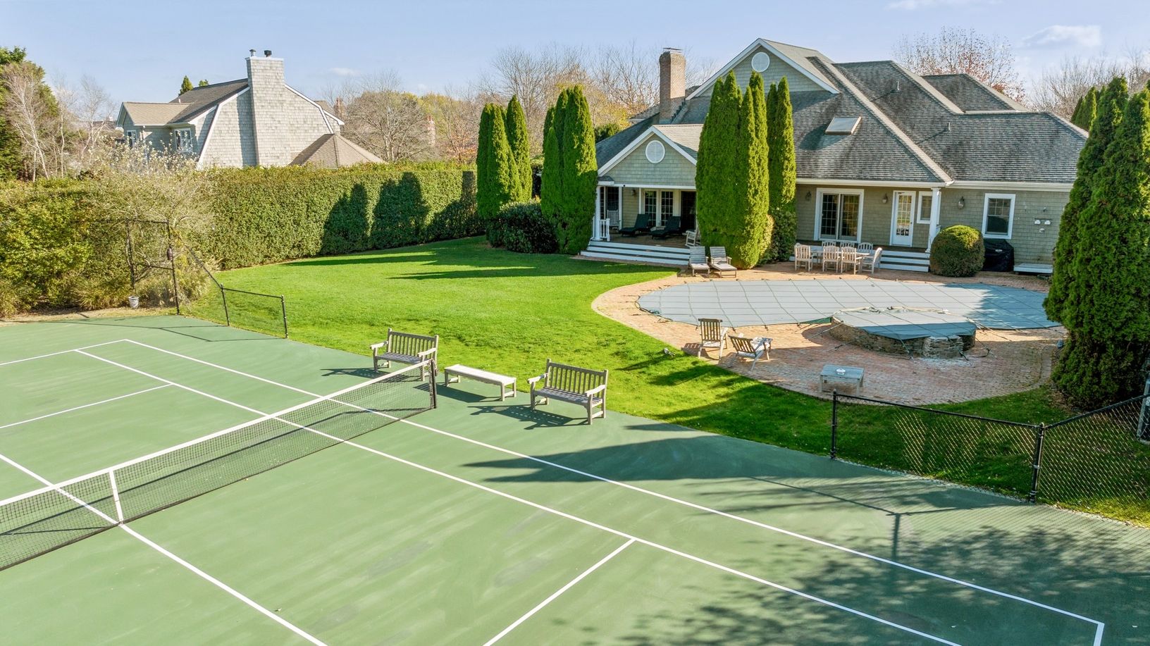 This south-of-the-highway Water Mill retreat is just a short ride to ocean beaches. Five bedrooms, four and a half baths, professionally decorated, heated pool, hot tub. Sunken all-weather tennis court. Estate quality landscaping. Easy, comfortable entertaining inside and out with attention to every possible detail for relaxed Hamptons summer living. Rental Registration RP# RP201515.