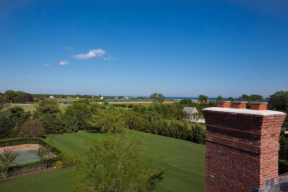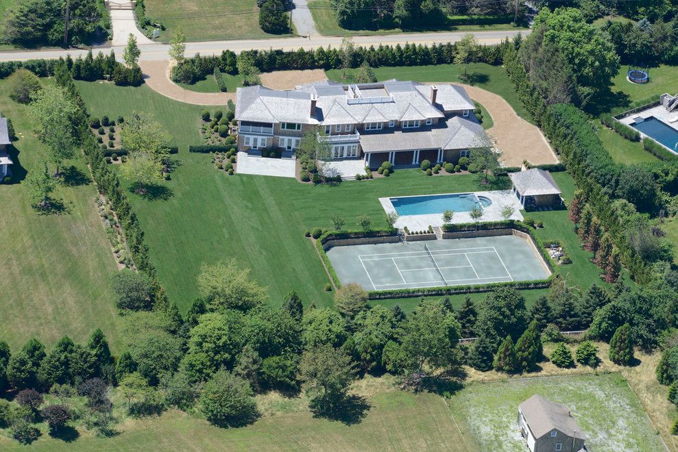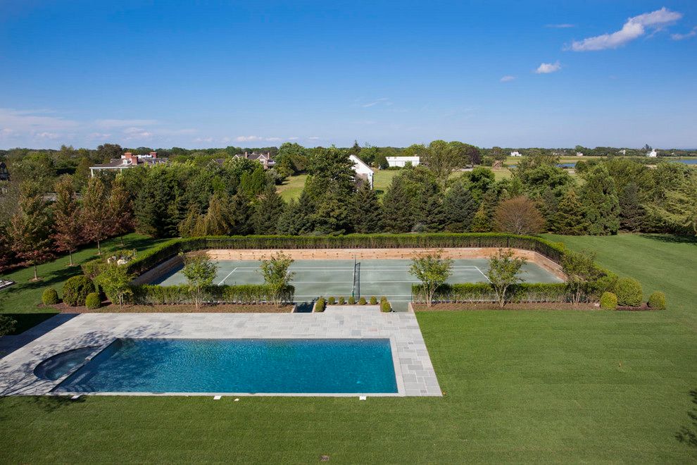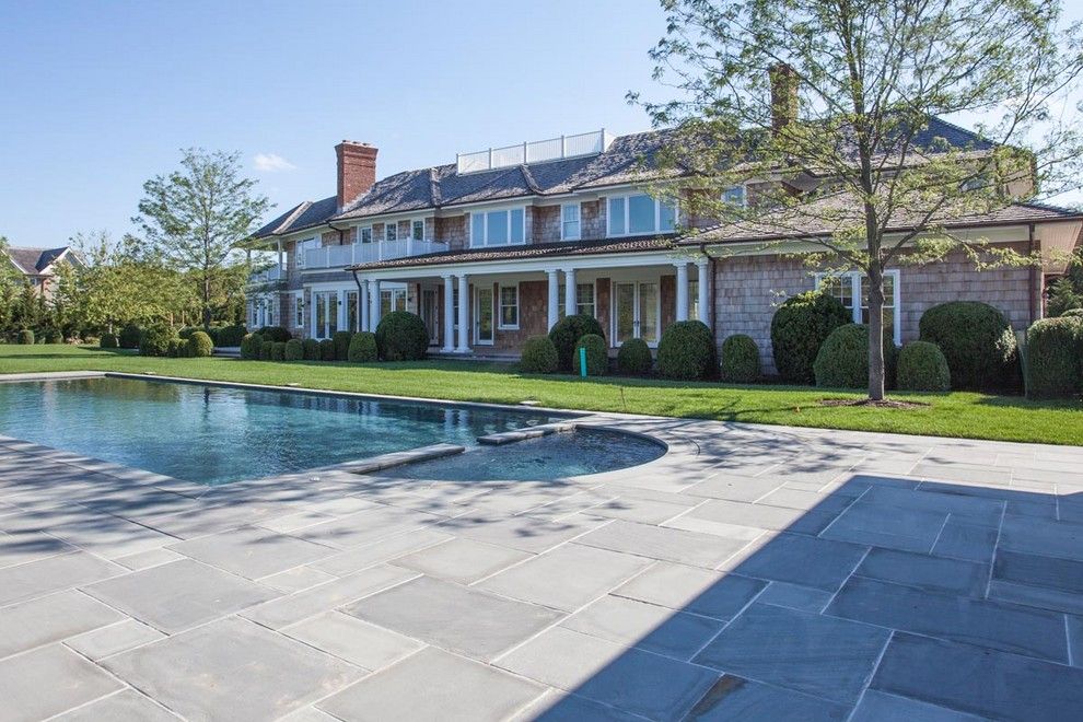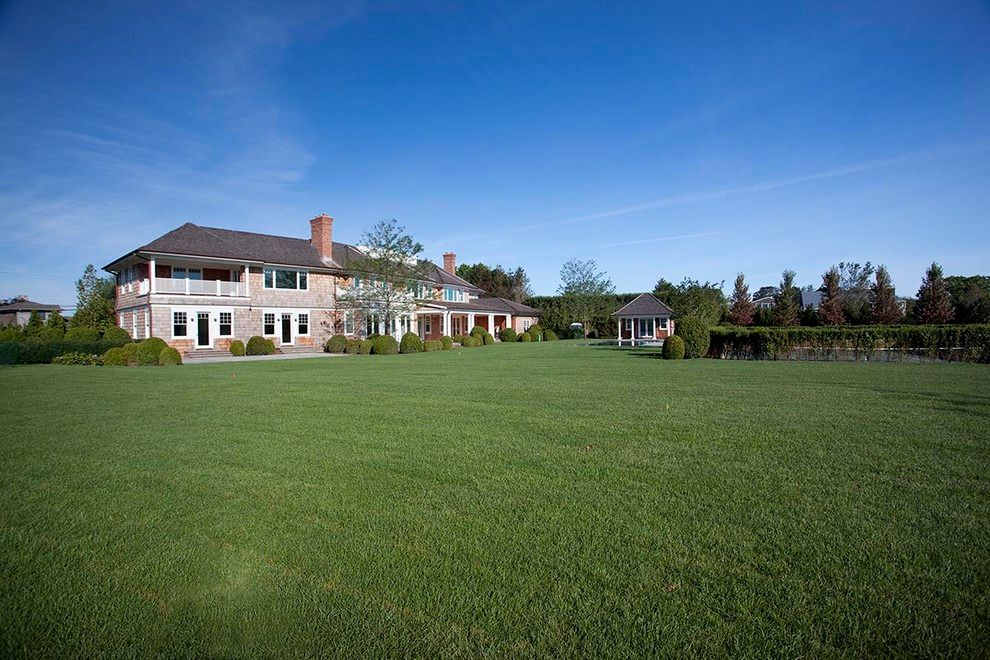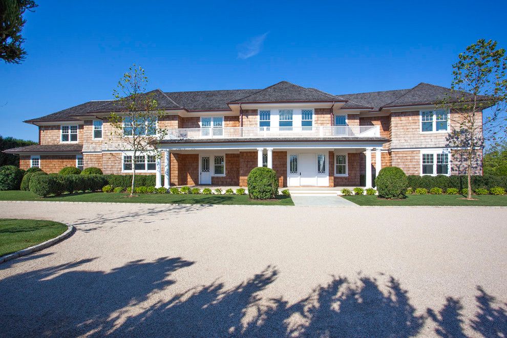 An 8700 SF +/- residence, anchoring a 2 acre gated estate, has now come to market only 7 properties from the beach compliments of the Lifton-Green organization. Reminiscent of the classic estates along Lily Pond Lane, this 8 bedroom shingled traditional, masterfully designed by Val Florio, is entered via a double-height paneled foyer over richly stained 9 inch long board, plain sawn white oak floors which fan out to include a living room and