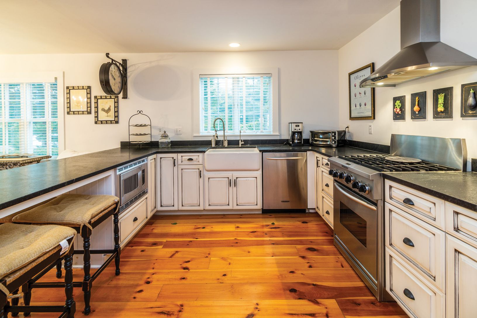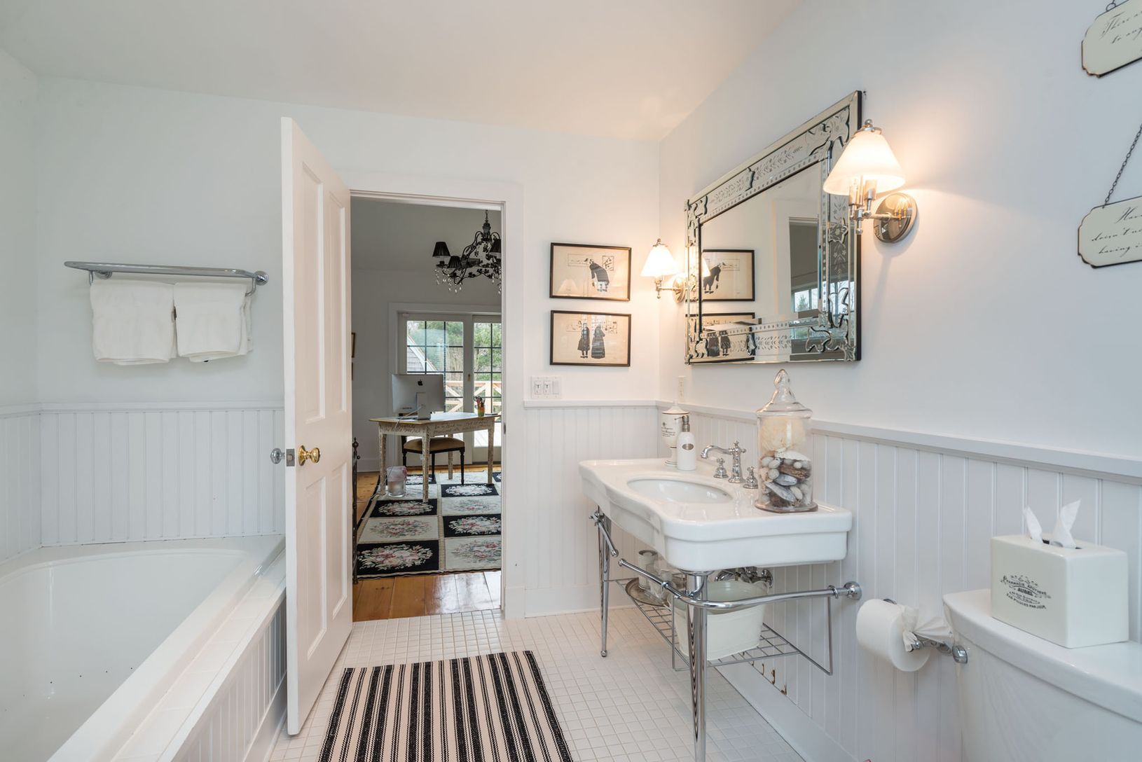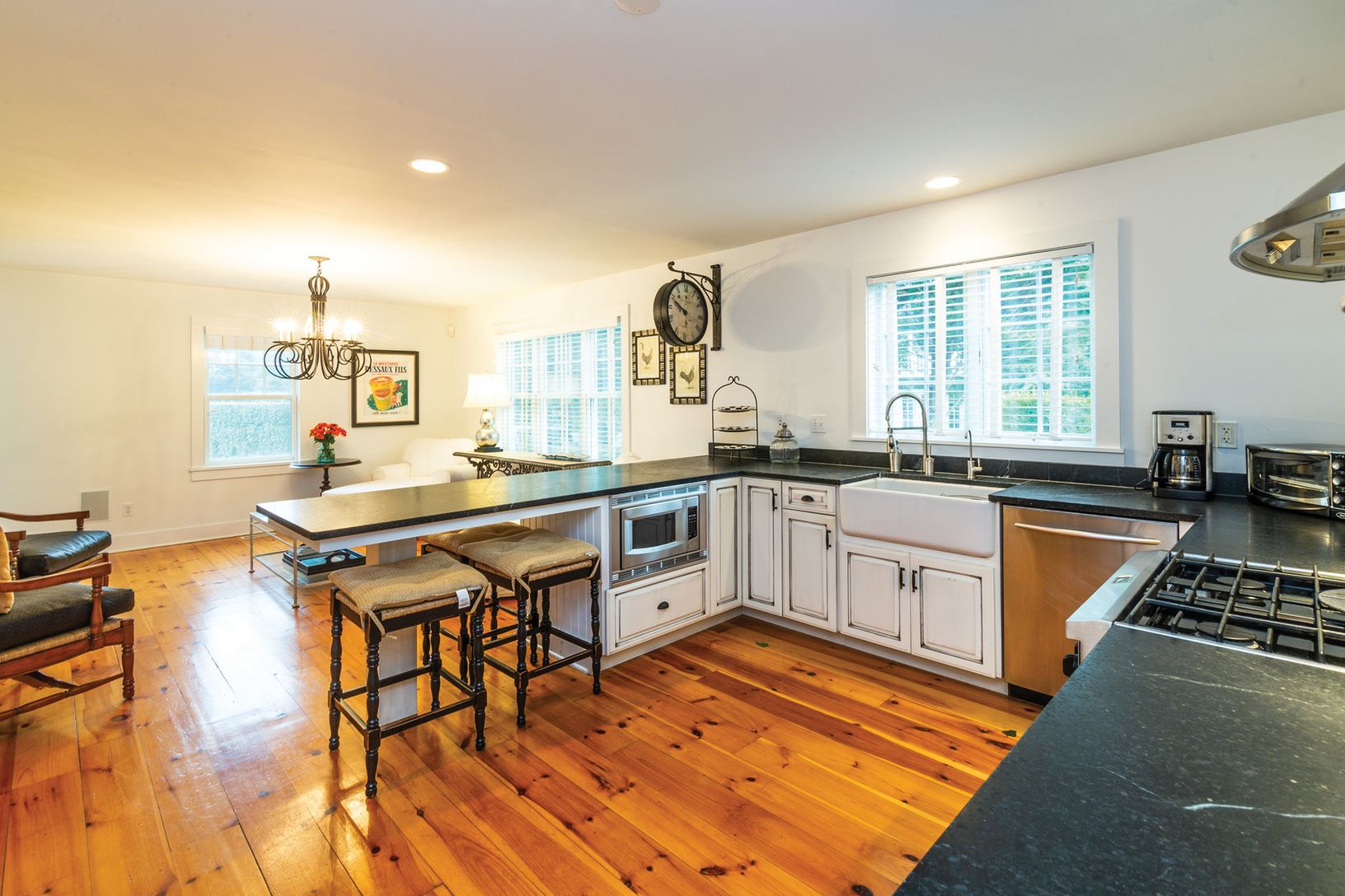 This recently renovated traditional offers an open floor plan with great room and welcoming stone fireplace. The property is located on a private cul-de-sac, just four blocks to the hamlet of Bridgehampton and one mile to town beaches. Flexible floor plan with two bedrooms on the main floor, and expansive master bedroom suite upstairs. In addition, upstairs in a separate wing, there is a guest suite with two bedrooms that share a half bath. L