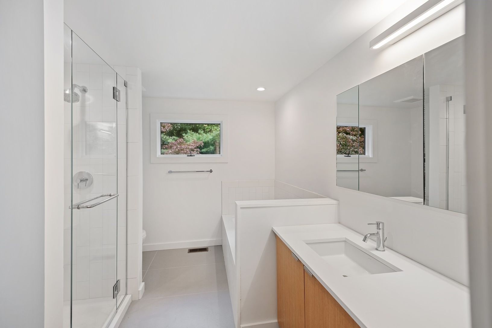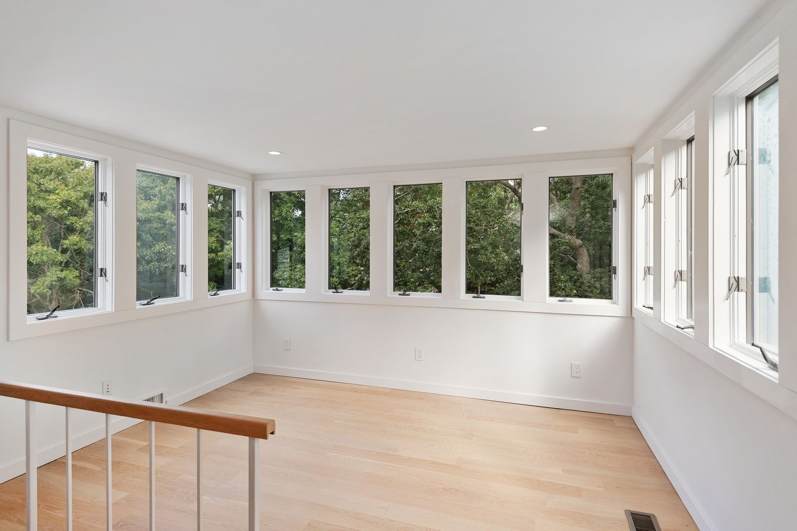This sleekly and completely renovated four bedroom 3 bath contemporary home is located in the Lion Head community of East Hampton Springs, and is just 2/10 mile to Lion Head Beach and Marina. Three sun drenched levels of living space, with walls of brand new windows and new hardwood and porcelain flooring throughout. The first floor is comprised of three bedrooms, sparkling new full bathroom, and a convenient laundry room. Up an elegant stairw