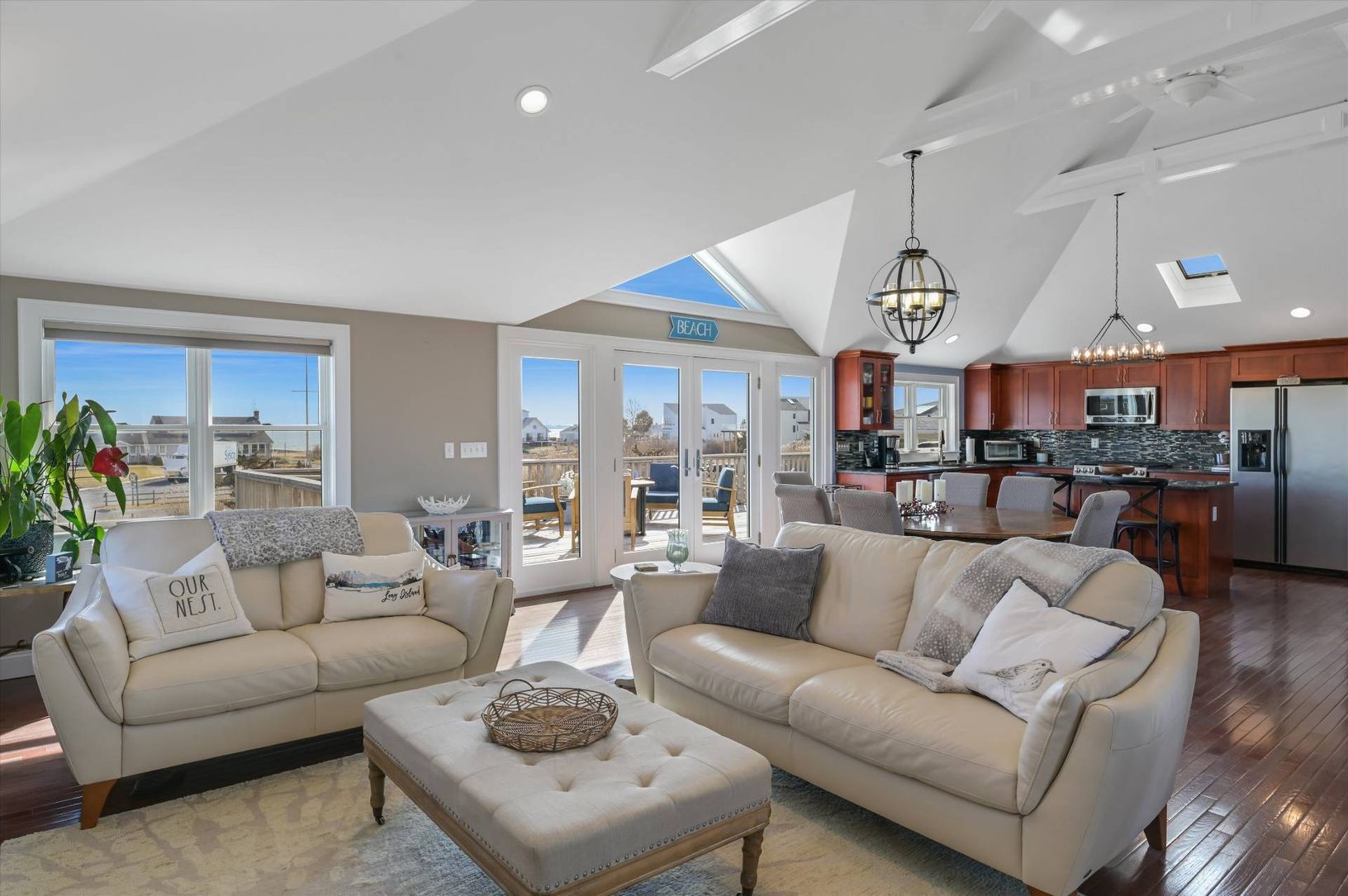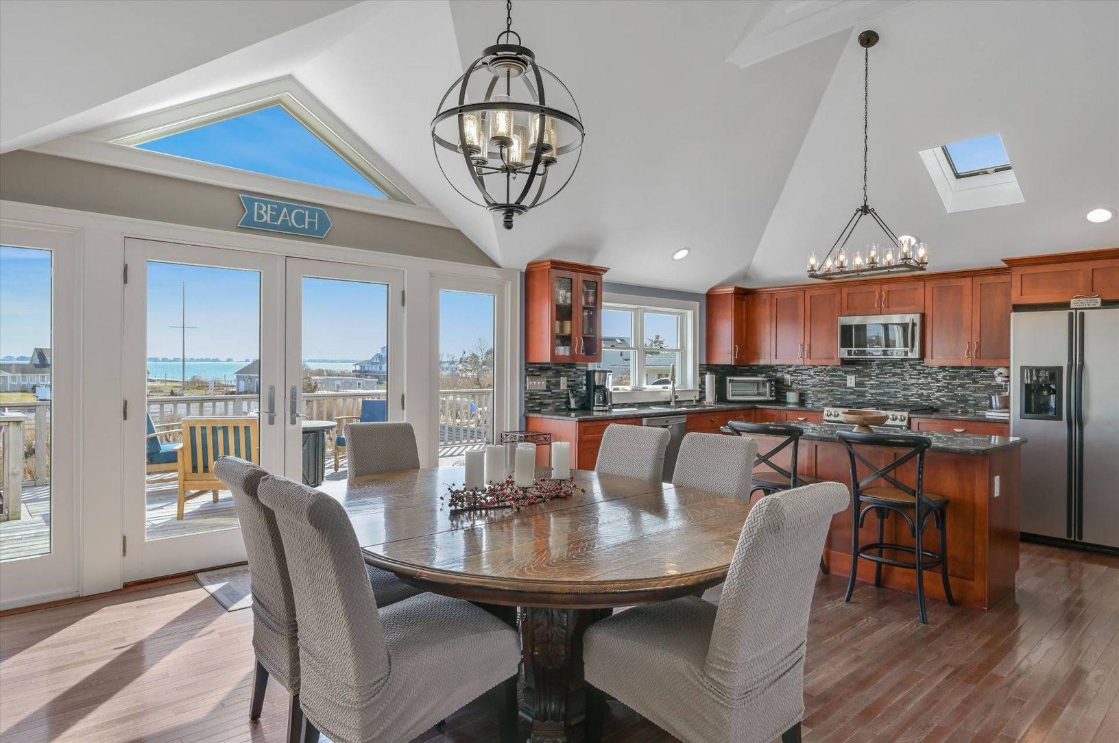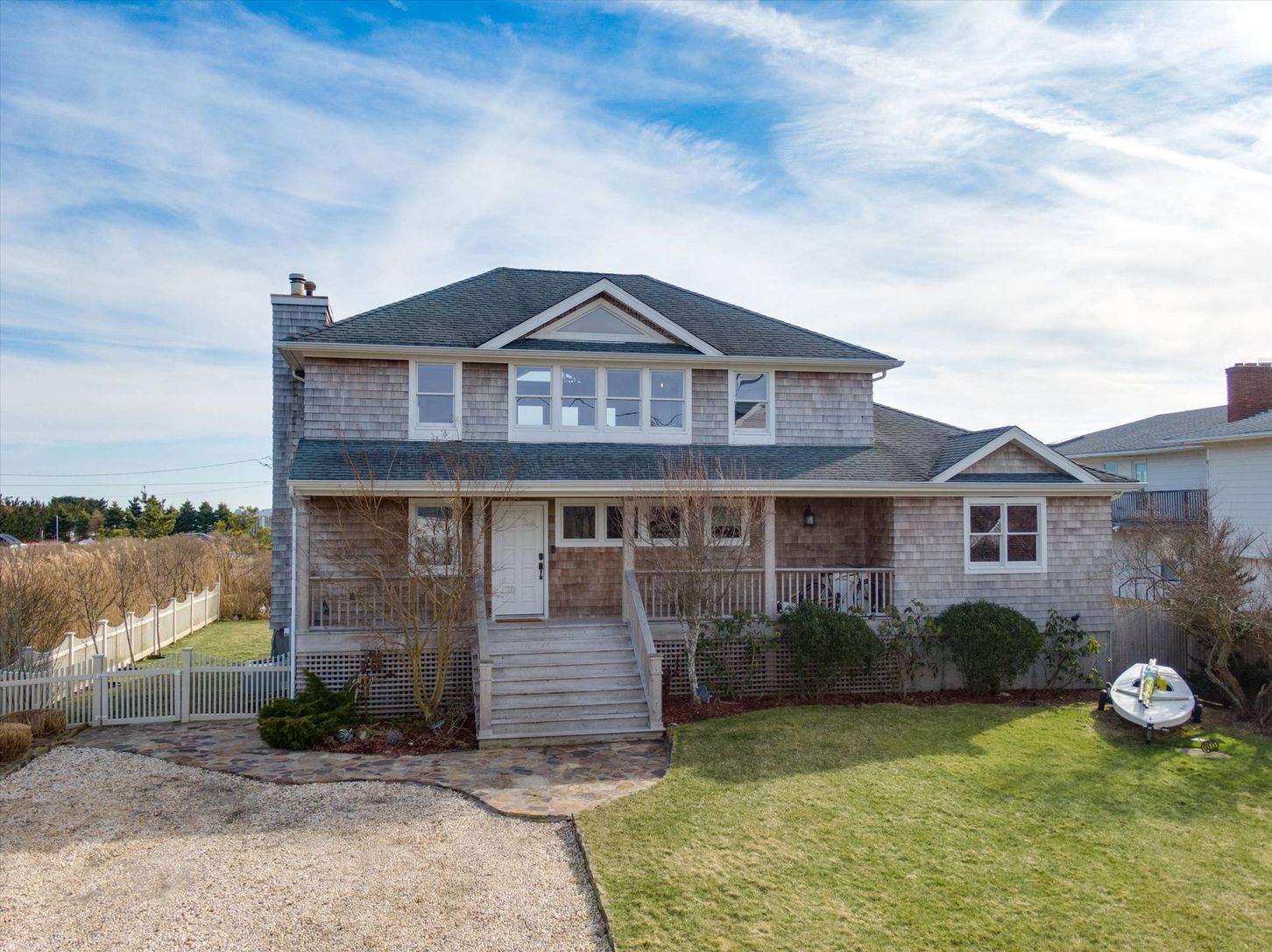 A true beach home in the nautical hamlet of Remsenburg. This inviting, turn key home is perfect for boat lovers and those wishing easy access to the waterways. It offers front and rear yards, covered front porch along with a private dock, not only to admire the serene views of Moriches Bay but for your water toys, as well. Designed to maximize the abundant water views of Moriches Bay, this homes' living room, eat in kitchen, cozy living &