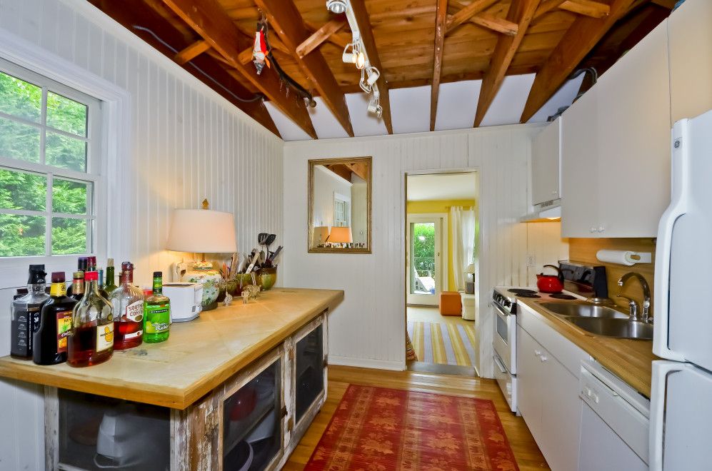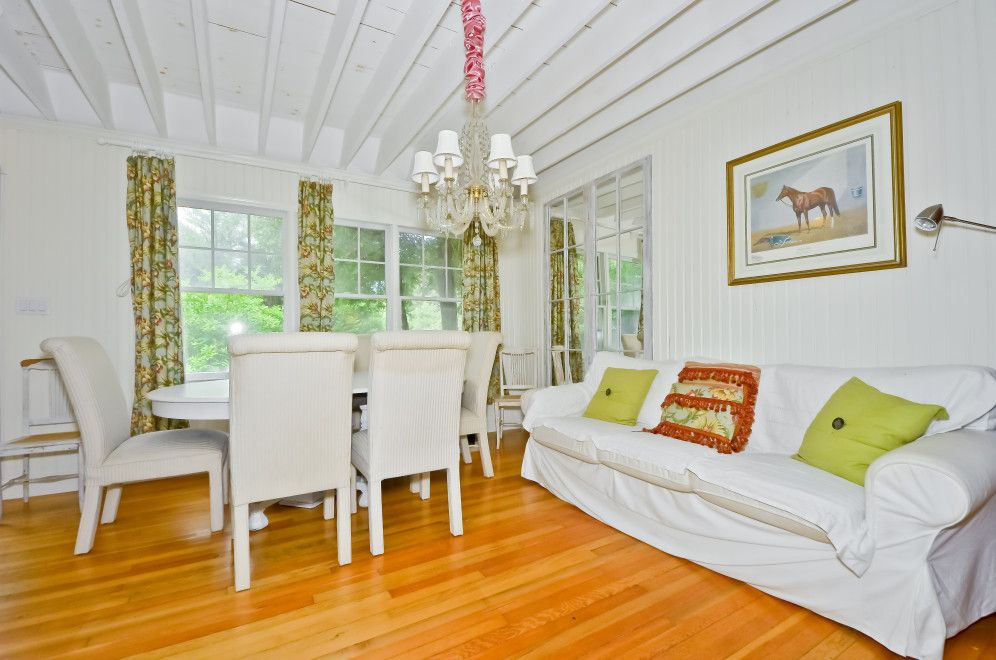 This rare 4 bedroom, 2 bath cottage, located on a private road in the Amagansett Dunes, features both first and second floor decks, a detached 2-car garage and a full basement - features not typically found this area! Authenticity abounds in the style and decor, whether in the formal living area or cozy den/dining room. 4 Bedrooms (one with an ocean view) and 2 bathrooms offers plenty of room for friends and family. Leave the car at home, whil