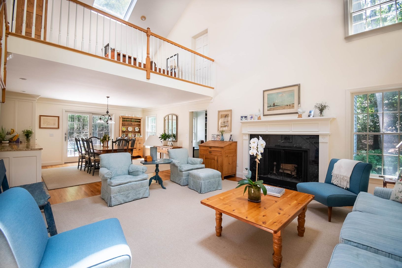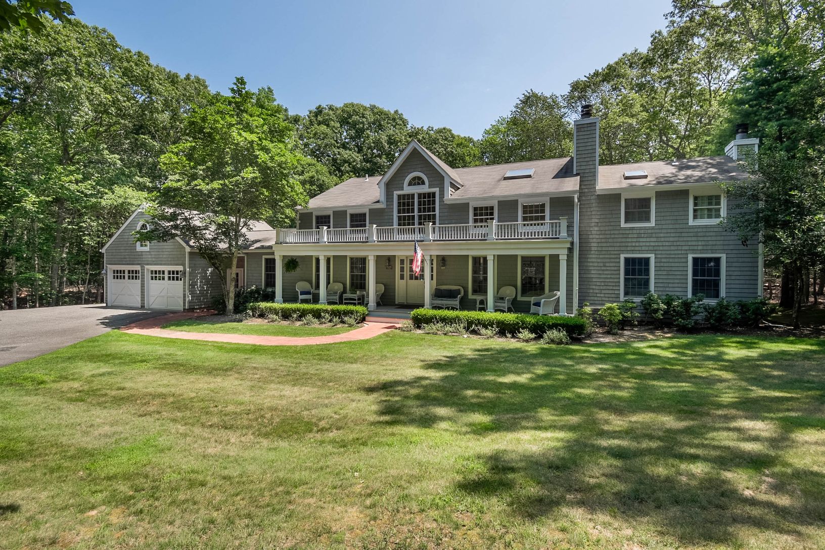 Located on a private 1.5 acre lot in Amagansett near Gardiners Bay, this gorgeous 5 bedroom, 3.5 bath home has been recently renovated and exudes sophistication. Through the covered front porch, one enters into the bright open floor plan featuring a living room with double-height ceilings and a fireplace, a spacious dining area that opens to the backyard, and a chef's kitchen with double ovens and a large center island. There is also a cozy fa