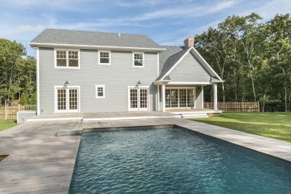 On a quiet cul-de-sac just minutes from both East Hampton and Amagansett Villages as well as some of the world's most beautiful ocean beaches, you will find this new construction with hardwood floors throughout. The traditional four bedroom, four and one-half bath home offers a very spacious living room with a wood-burning fireplace and French doors leading out to generous decks surrounding the saltwater pool, a dining room and a beautiful an