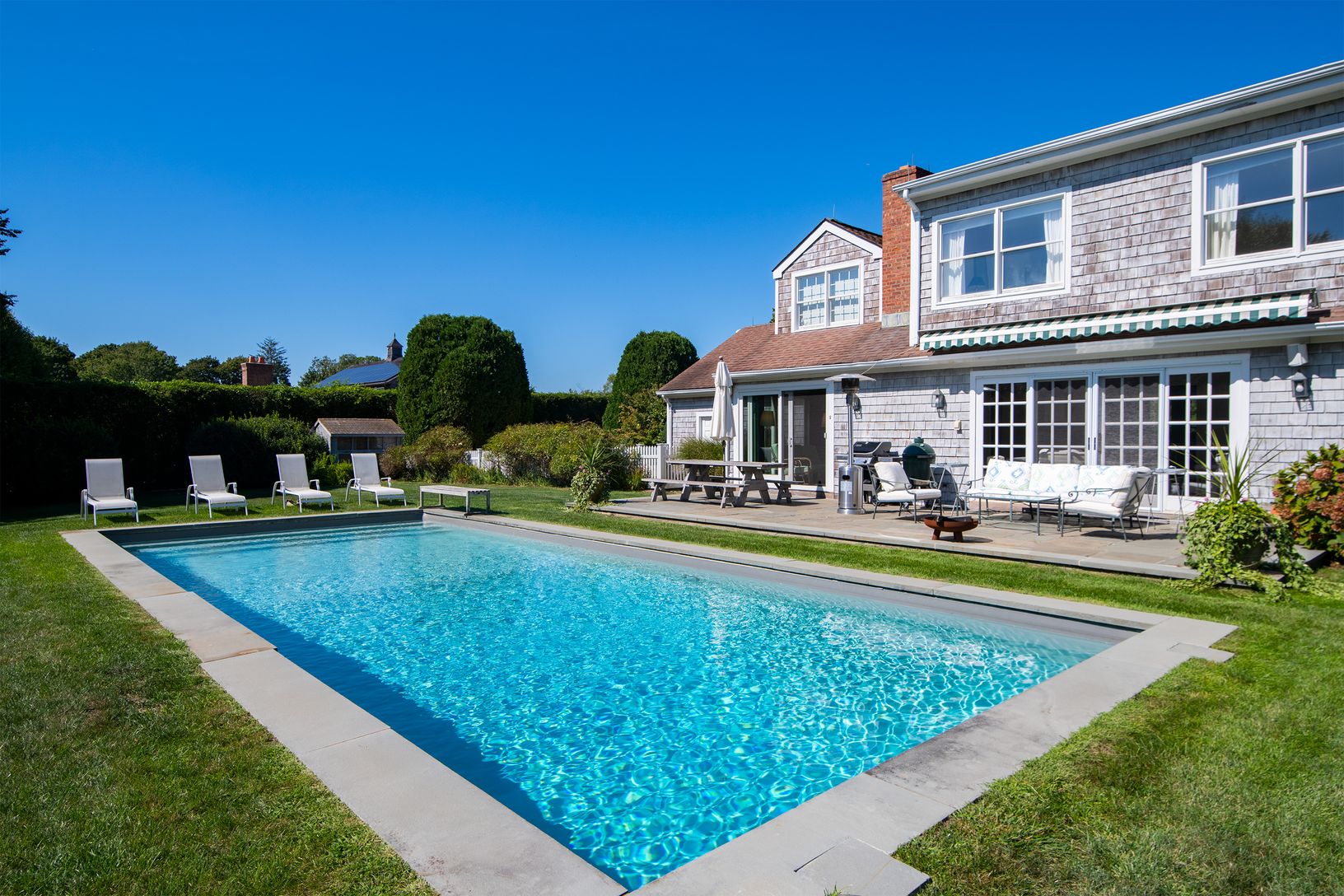 Located in the epicenter of Hamptons equestrian life, this charming three bedroom home is elegantly appointed and sited on a flat and cleared .96 acre parcel. For those looking for simplicity, there are two bedrooms on the main level, along with a large and bright living room overlooking the pool with south and west exposure, a formal dining area, kitchen, and delightful sunroom for lazy summer evenings. The second level is dedicated to the pr