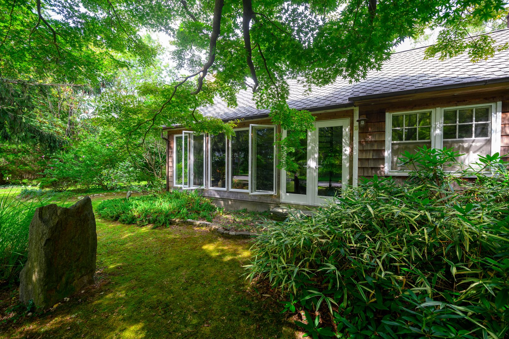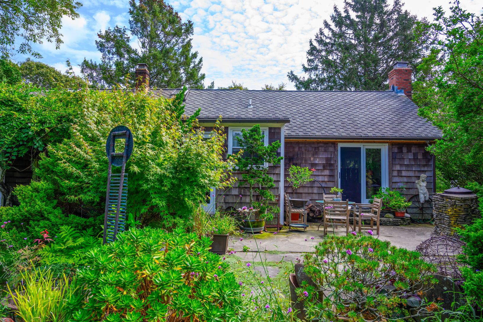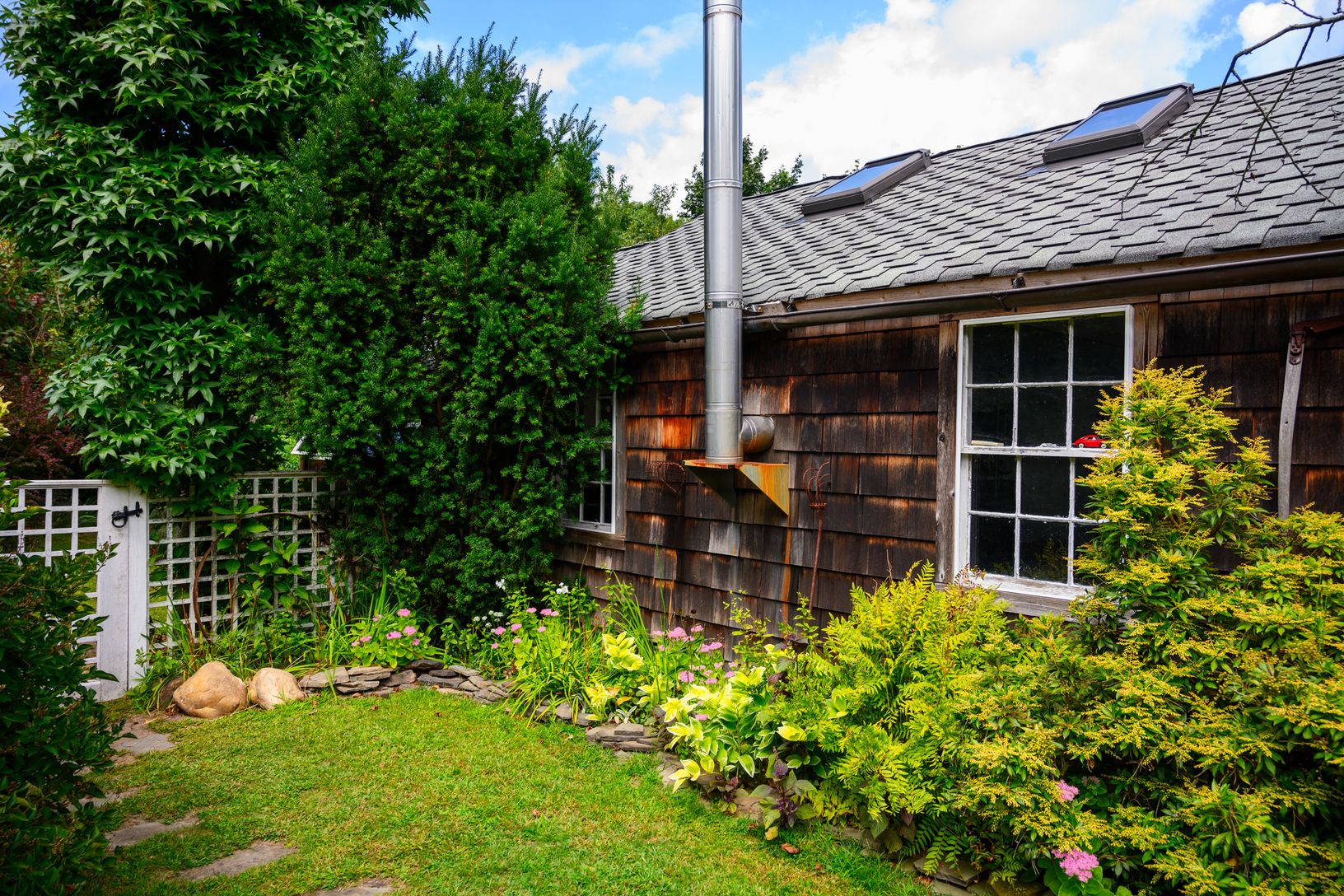 This charming cottage sited on a shy half acre offers 1000 sf of fully finished living space. This one bedroom residence is comprised of an open kitchen, living room with wood-burning fireplace and an en-suite master with walk-in closet. The home features windows that bathe the home in natural light and overlooks the bucolic grounds with four apple trees, two pear trees, a perennial garden, dogwoods, magnolias, as well as a towering arborvita