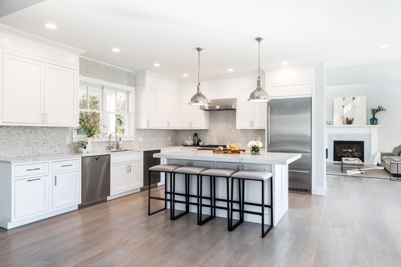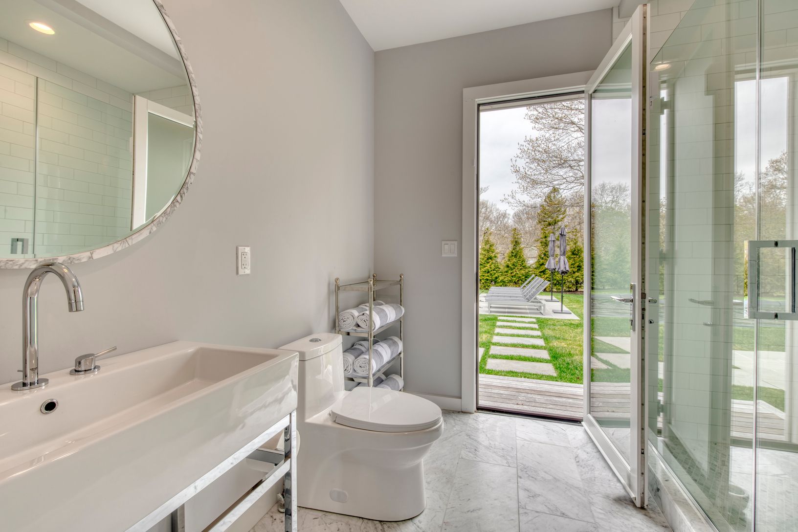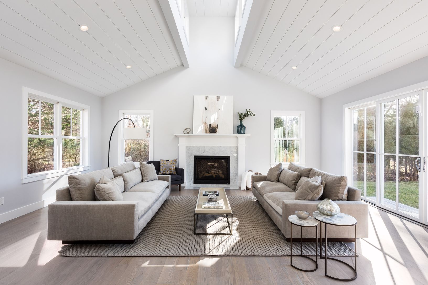 Absolutely everything is new from the foundation up in this beautiful North Haven home complete with a classic Hamptons shingle-style exterior and sophisticated modern finishes throughout the 3,004 sq. ft. interior. Beyond the circular drive, a covered front porch delivers a huge dose of curb appeal to the private .82 acre property surrounded by a border by specimen trees. Open plan living, dining and kitchen with an entire wall of sliders to