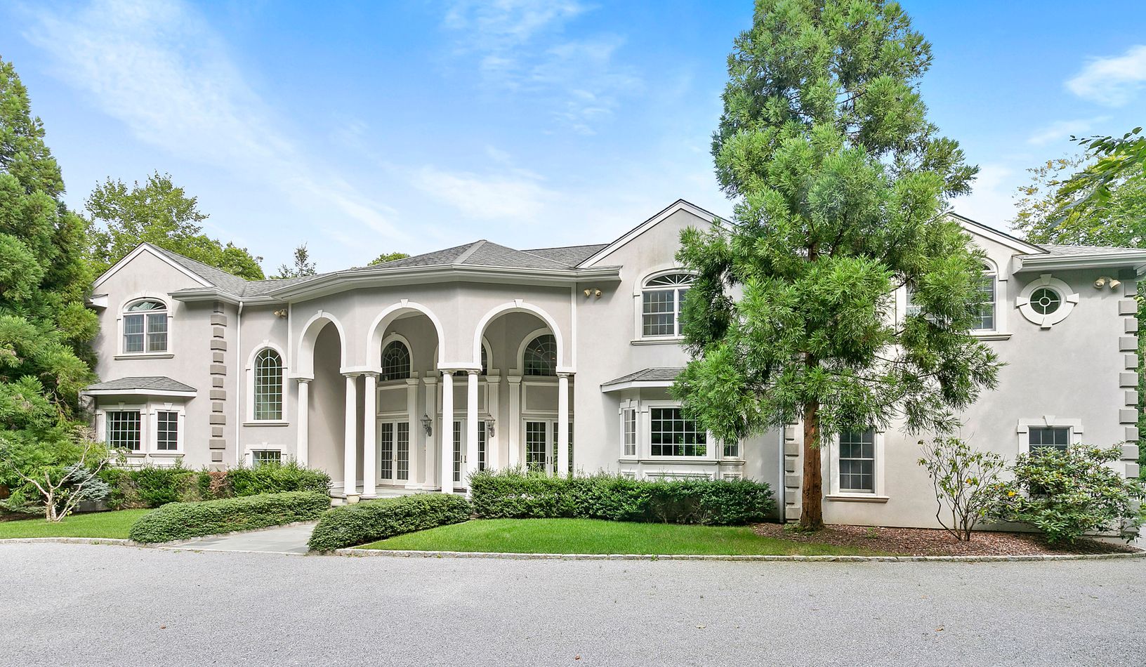 This magnificent stucco home features more amenities than most would know to ask for. Set on two +/- acres amidst mature white pines, the grand entrance takes you past the pillars and under the arches into the colossal great room. The first and second floor master bedrooms feature fireplaces, walk-in closets, and spa-equipped bath suites. Two additional bedrooms and staff quarters with separate entrance are located on the south wing. The house