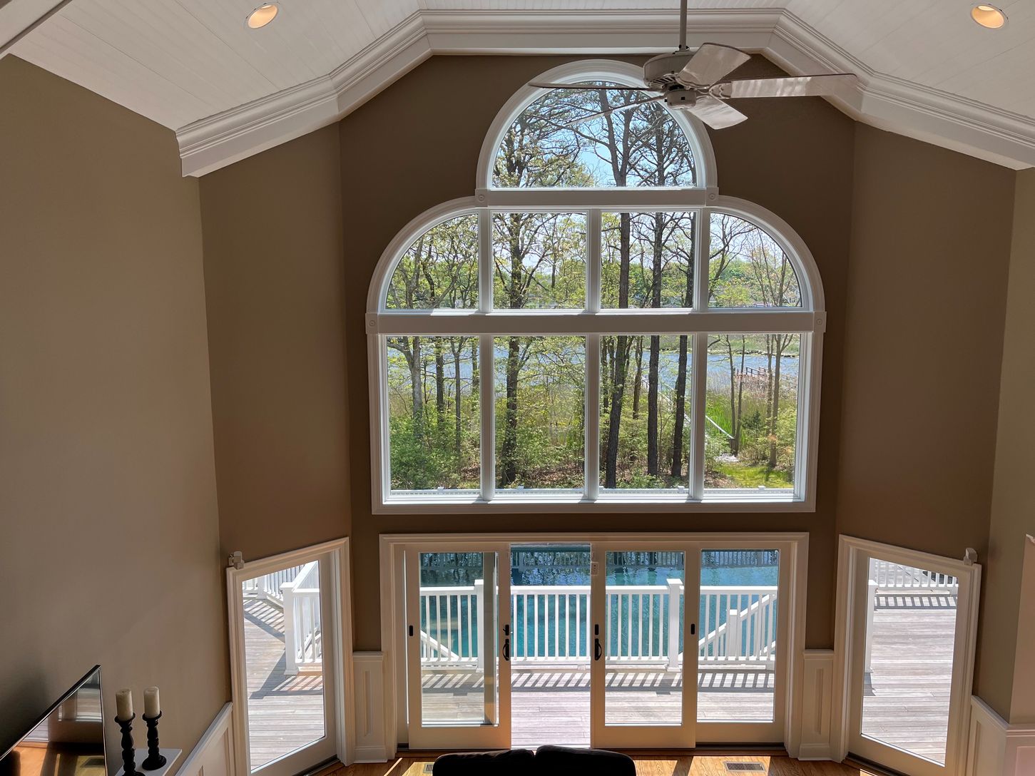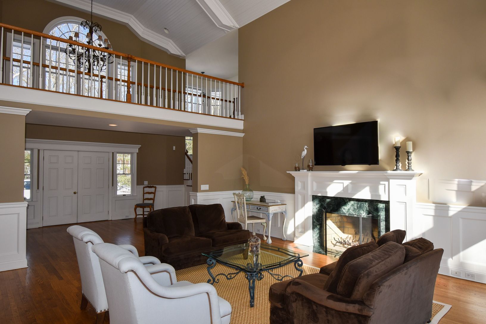 Waterfront retreat situated on 1.3 acres in a private community South of the Highway. This beautifully detailed, 4,000 square foot Post Modern features cathedral ceiling living area with fireplace, separate den with fireplace, an office, fully equipped eat-in kitchen, dining room, master bedroom with marble bath, plus 3 guest bedrooms and 2.5 additional bathrooms, finished play room, 3 car garage and entire new roof in 2021. The outdoor entert
