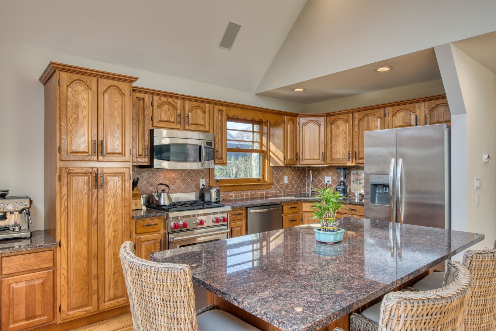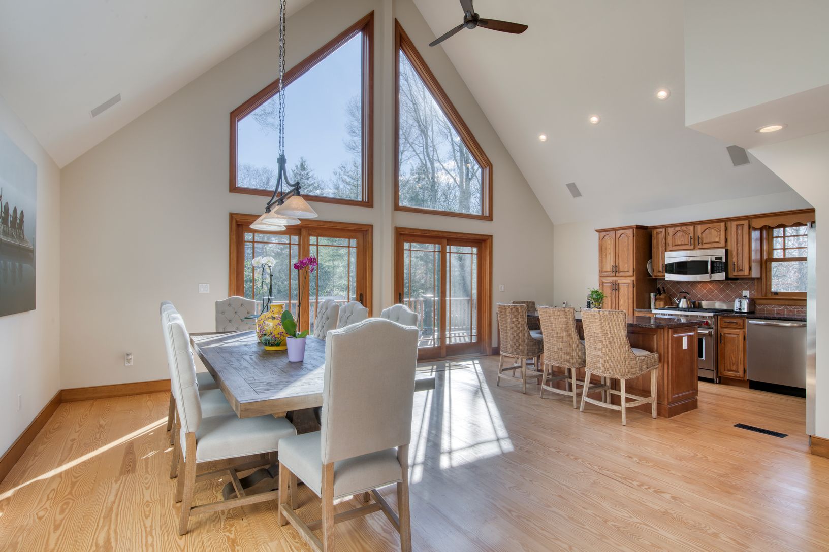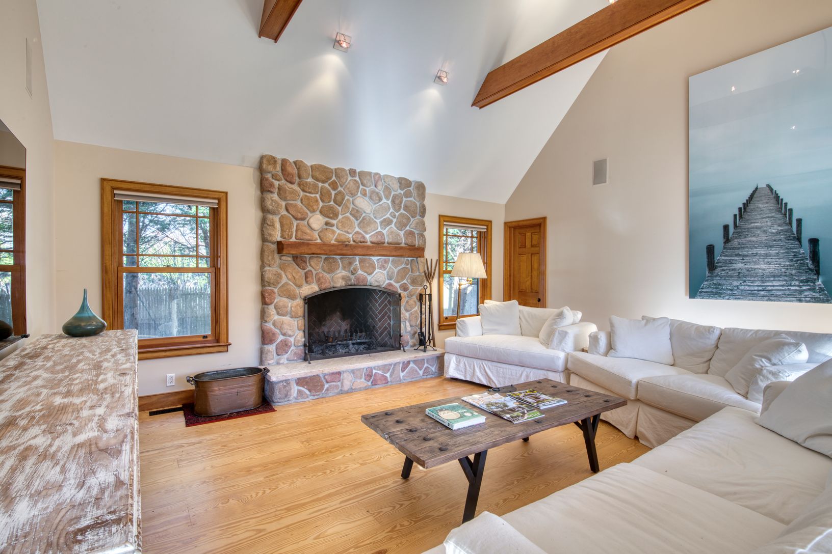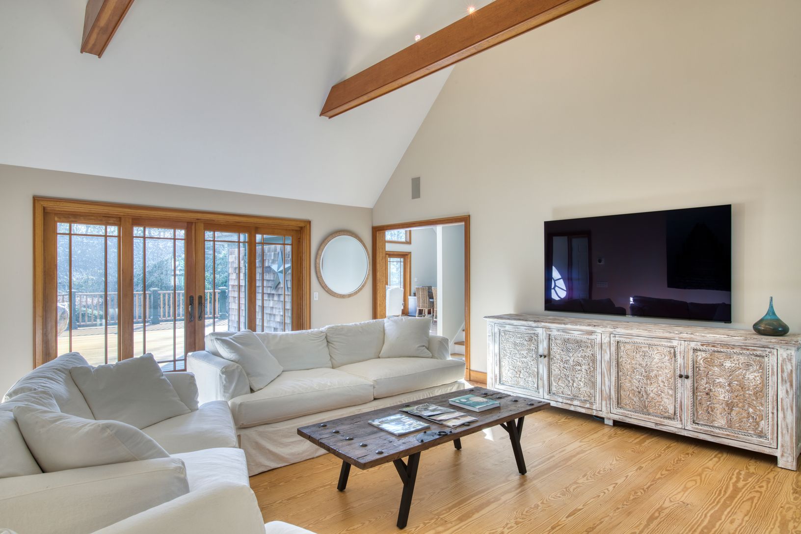 Located in the heart of Springs - close to bay beaches, marinas, waterfront dining, and more, this private home sits at the end of a quiet cul-de-sac. The entrance features a grand living room with wood burning fireplace and a comfy seating area. The large kitchen has a huge island for and large dining table. Surrounded by mahogany decking, this home integrates indoors and out with large windows and plenty of sunshine pouring in. There are two