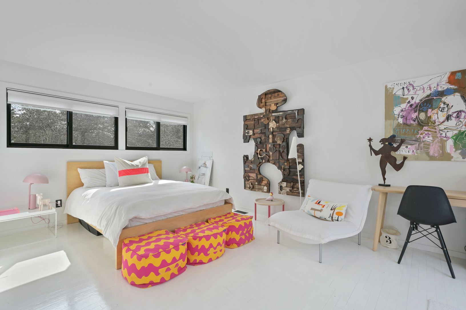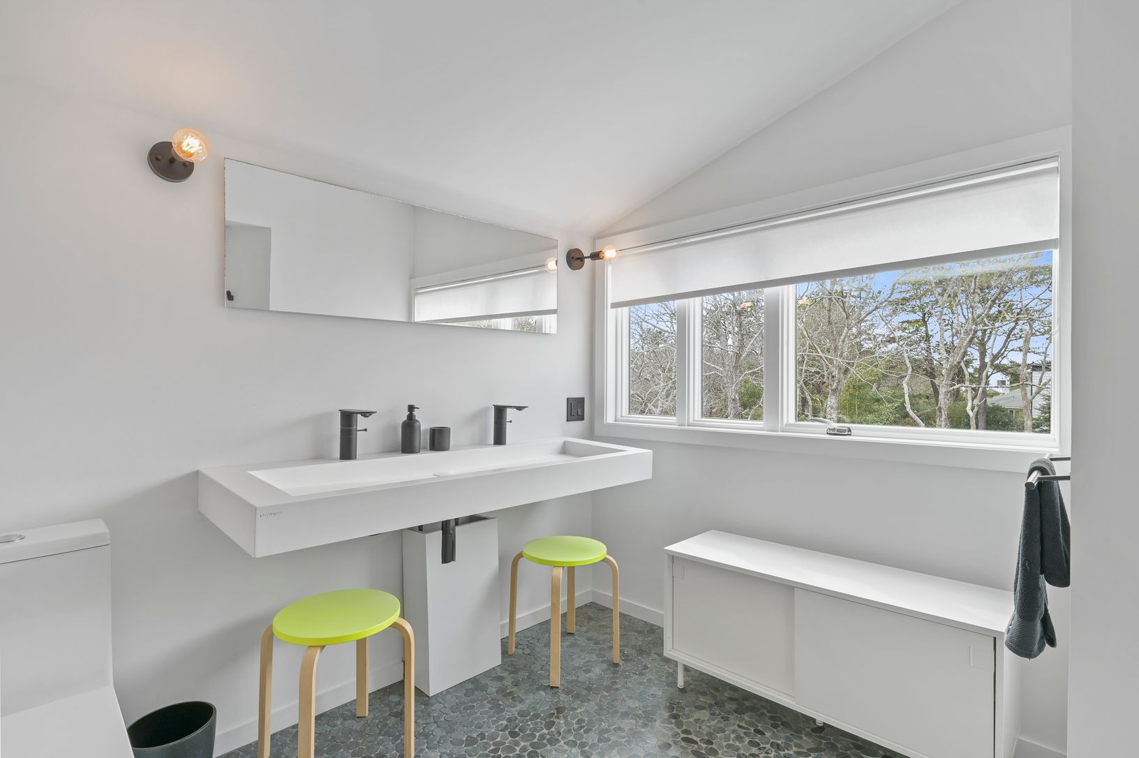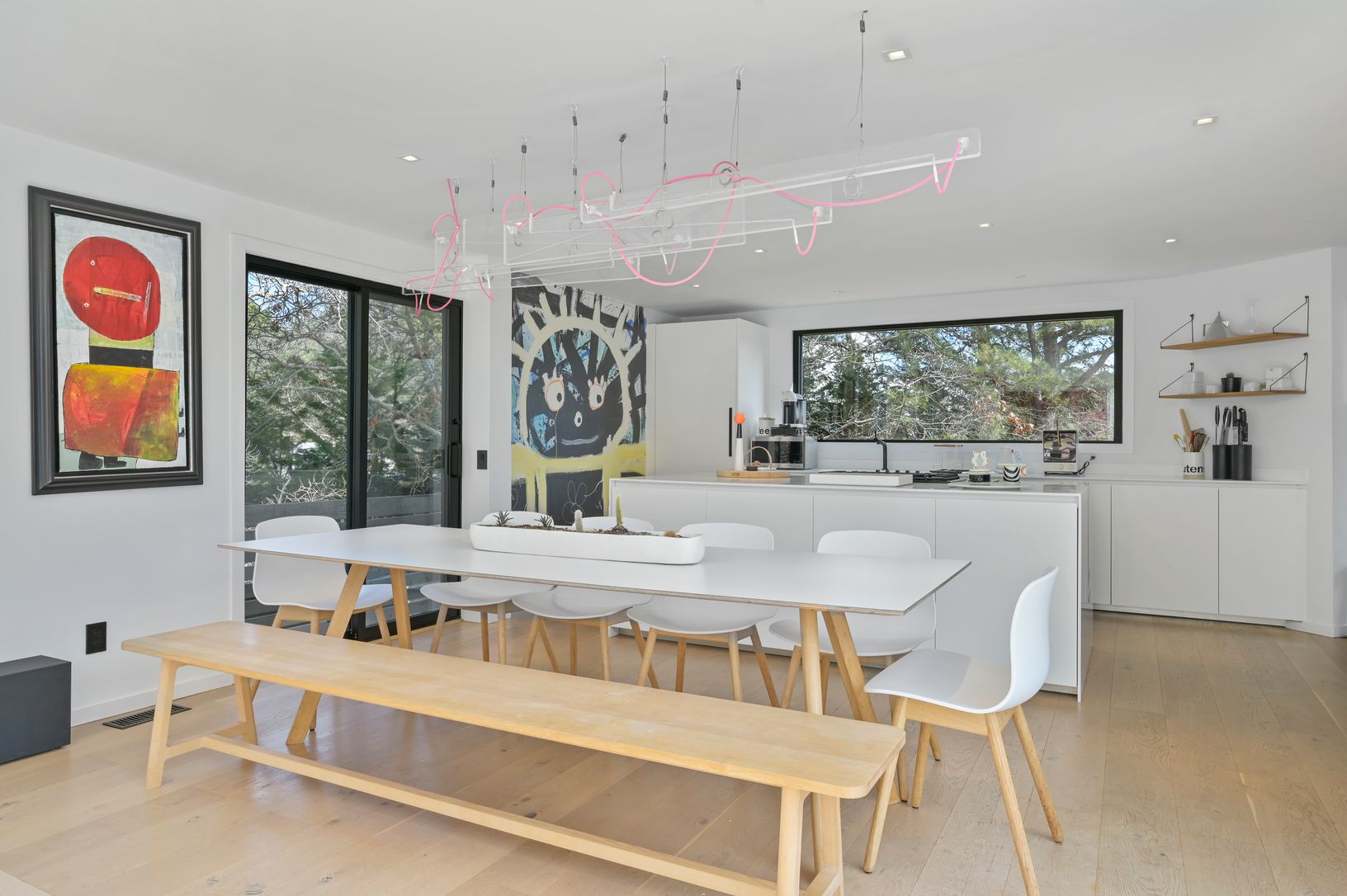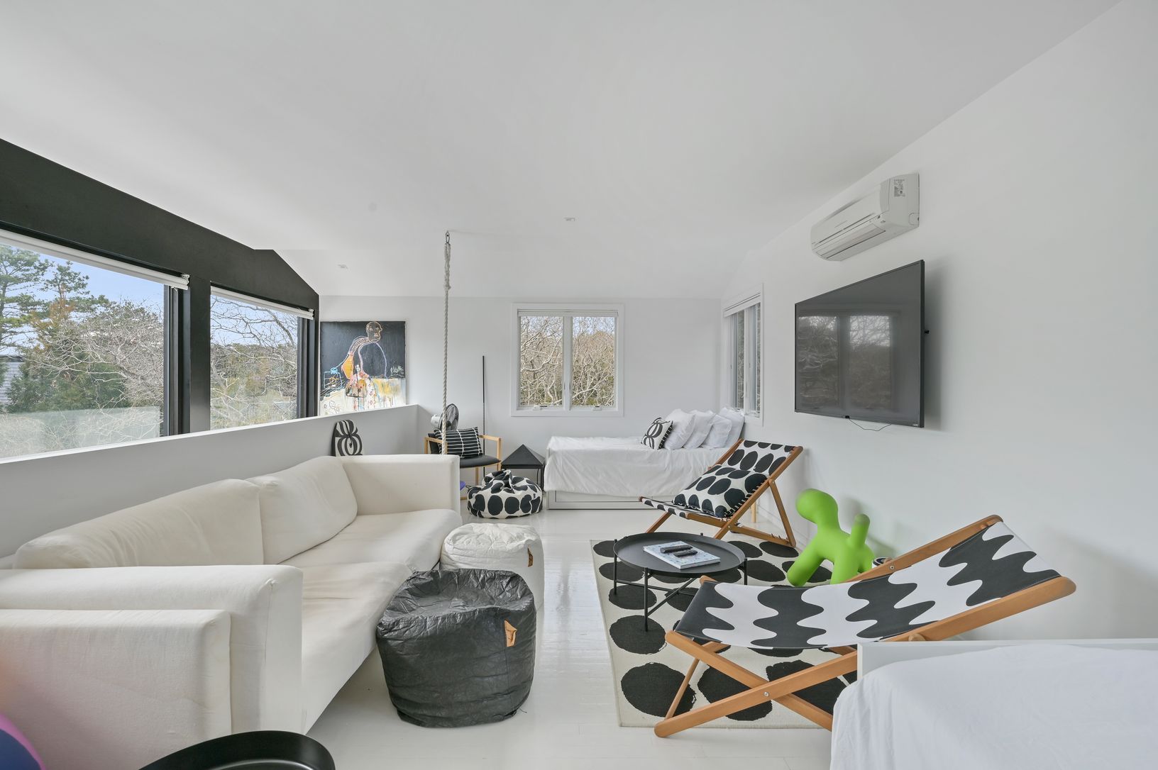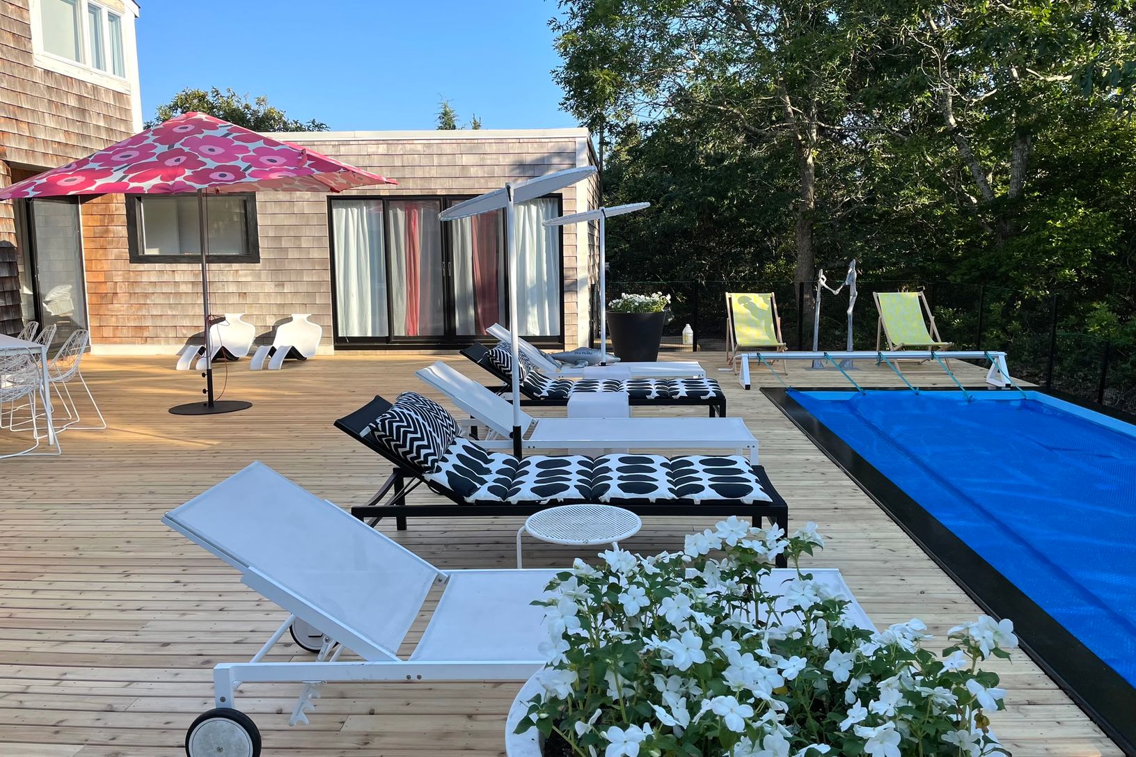 This Modern Beach house is brimming with light and has pops of color throughout! Recently renovated with a large new kitchen complete with island and top of the range appliances. The Living Room and 1st Floor Master Bedroom have sliders to the outside deck, which offers room for sunning, dining and dipping in the pool. 4 additional bedrooms offers offers room for all while enjoying your East End vacation. Cool off in the Outdoor Shower after a