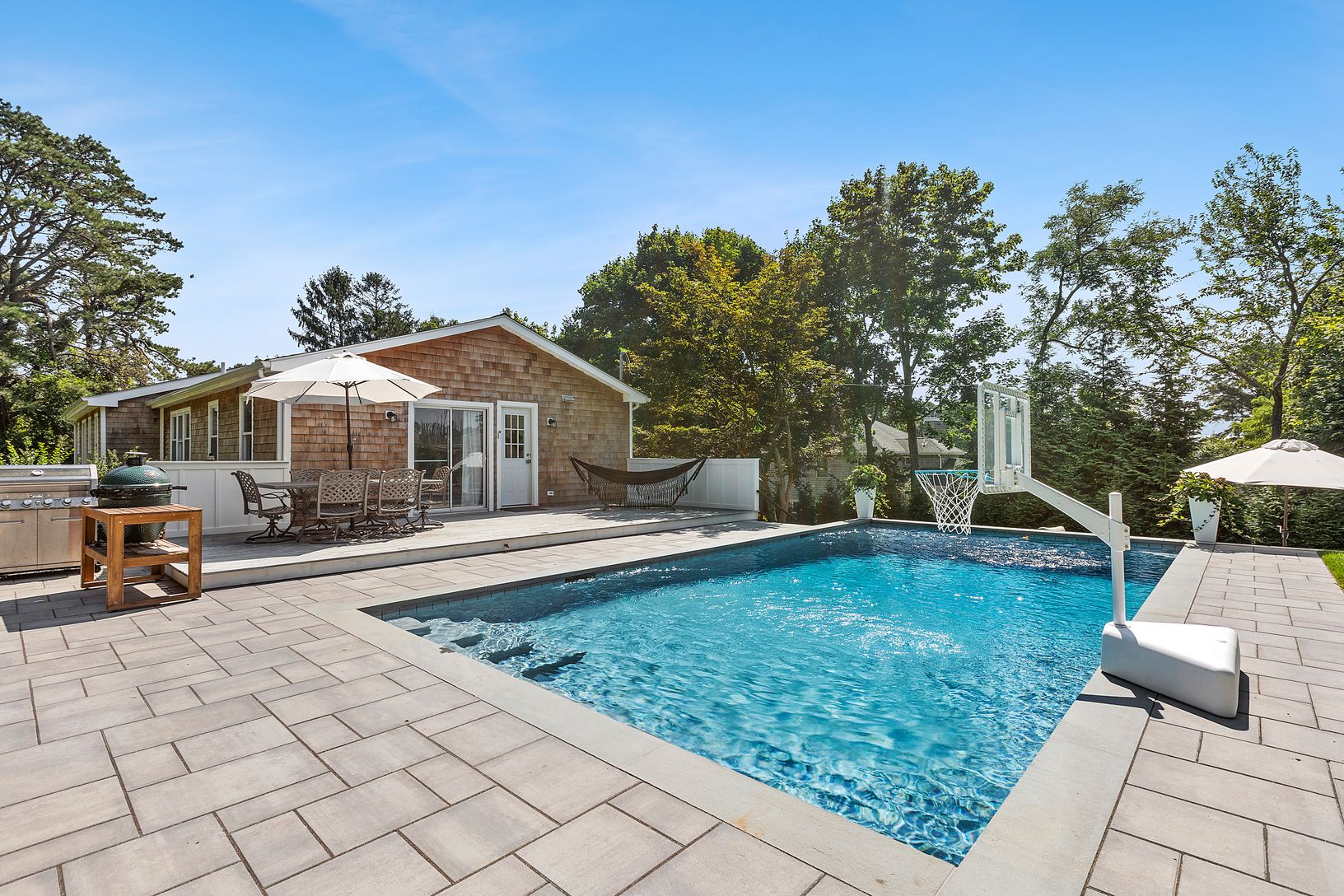 Welcome to this stunning home nestled just outside the beautiful Shinnecock Hills area of Hampton Bays. With its ideal location conveniently situated between the villages of Southampton and Hampton Bays, this property offers the perfect blend of privacy and accessibility, and includes deeded beach access to Shinnecock Bay. Step inside and be greeted by the spacious open floor plan that seamlessly connects the various living areas. The main le