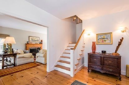 Tranquility is the key at this tastefully appointed four bedroom farmhouse bordering estate section. On over 2+/- acres of nicely sequestered grounds, this home has a gracious layout that includes entry foyer, generously sized living room with fireplace and French doors to yard, formal dining room with adjacent screened porch, chef's kitchen with sitting area adjacent, a lower level with media and play room, and four bedrooms including two mas