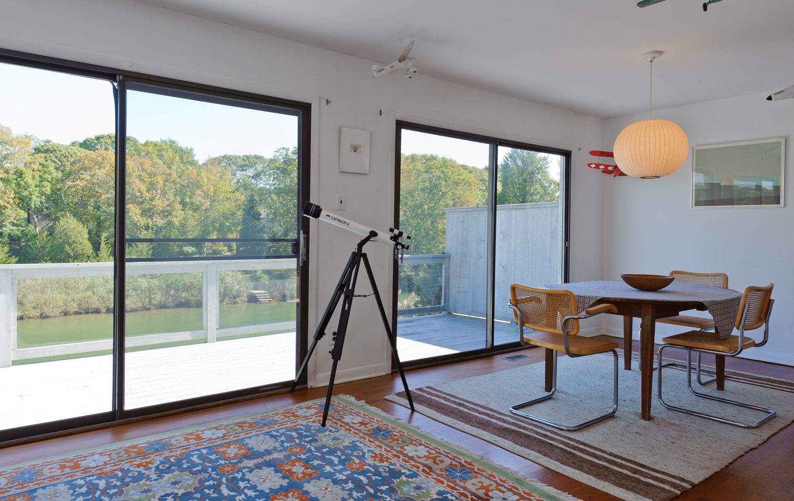 This wonderful modern home has 100 feet of frontage on Hog Creek. Upside down design makes best use of the great views of the water with big open living spaces upstairs. Downstairs offers a spacious master suite with water views and walk-out outdoor shower, and two guest bedrooms and bath.Big decks wrap the home on all sides. Situated on a .6 acre lot in lovely Lion's Head, the property comes with community marina and beach on Gardiners Bay, a